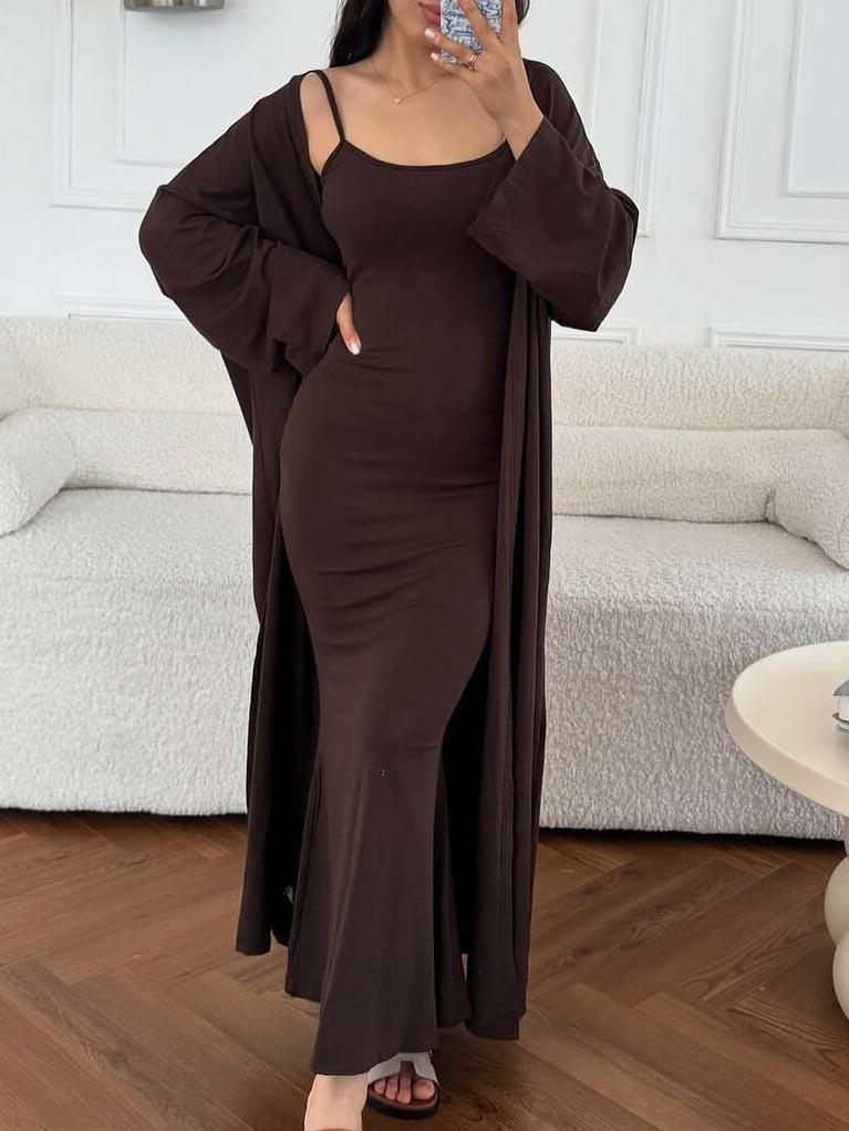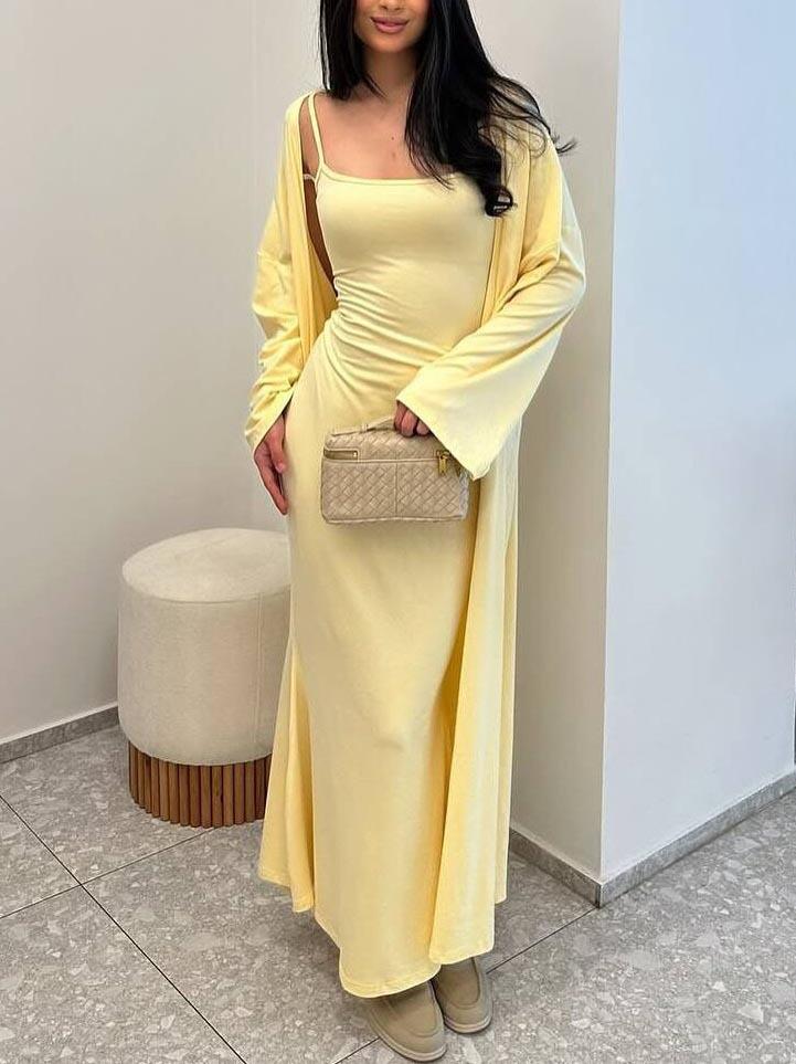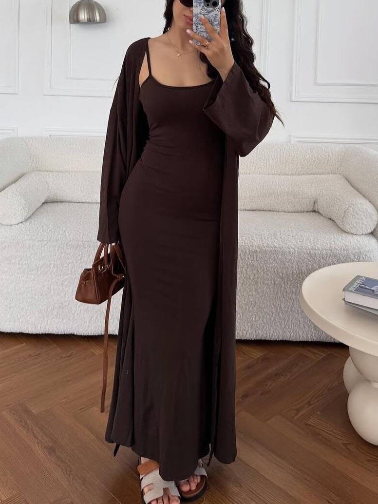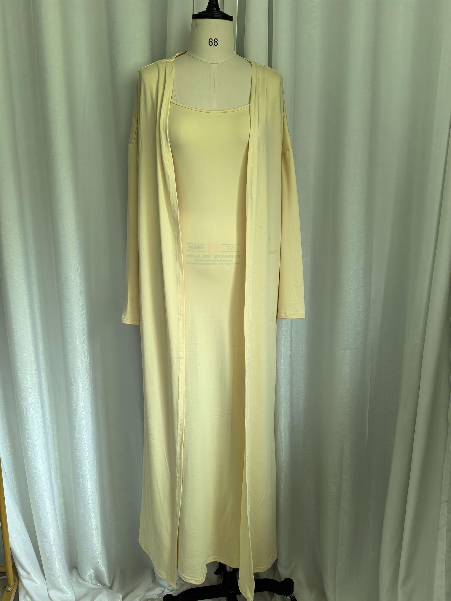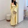 Vestido ajustado sin mangas con tirantes de estilo nuevo de moda transfronteriza, cárdigan largo exterior de color puro, conjunto de dos piezas