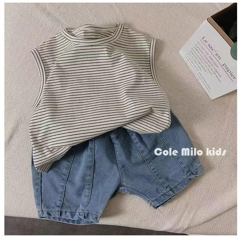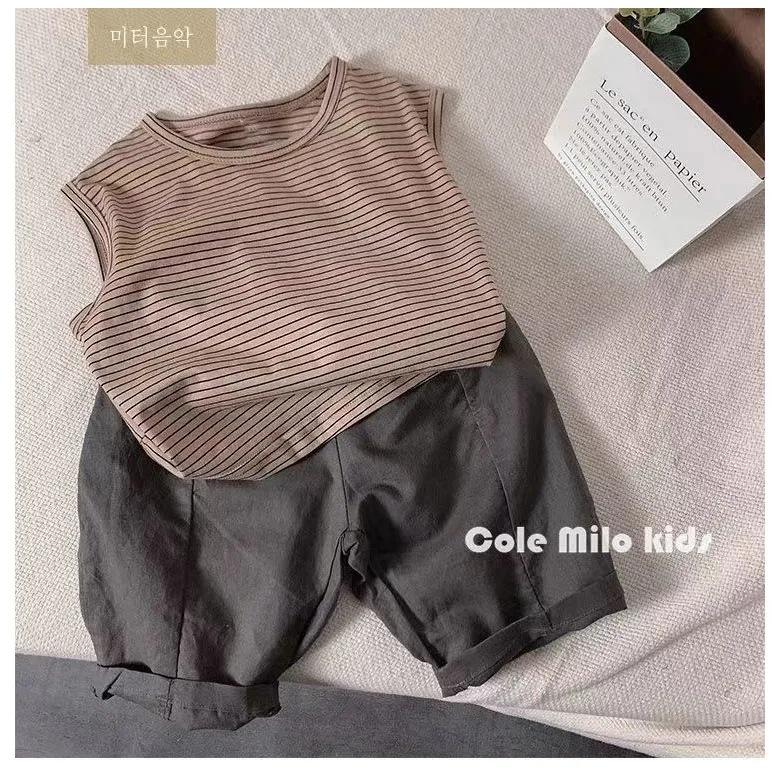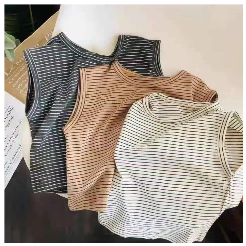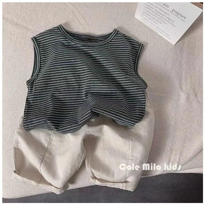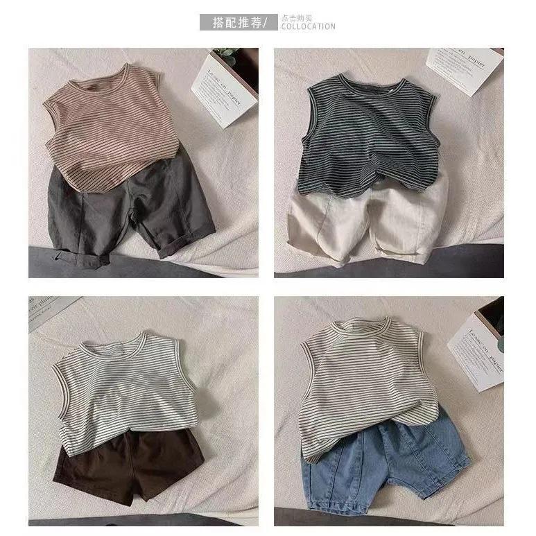 Chaleco para niño Algodón puro Sin mangas Top holgado Camiseta a rayas para niña Ropa exterior universal para bebé infantil Estilo coreano T