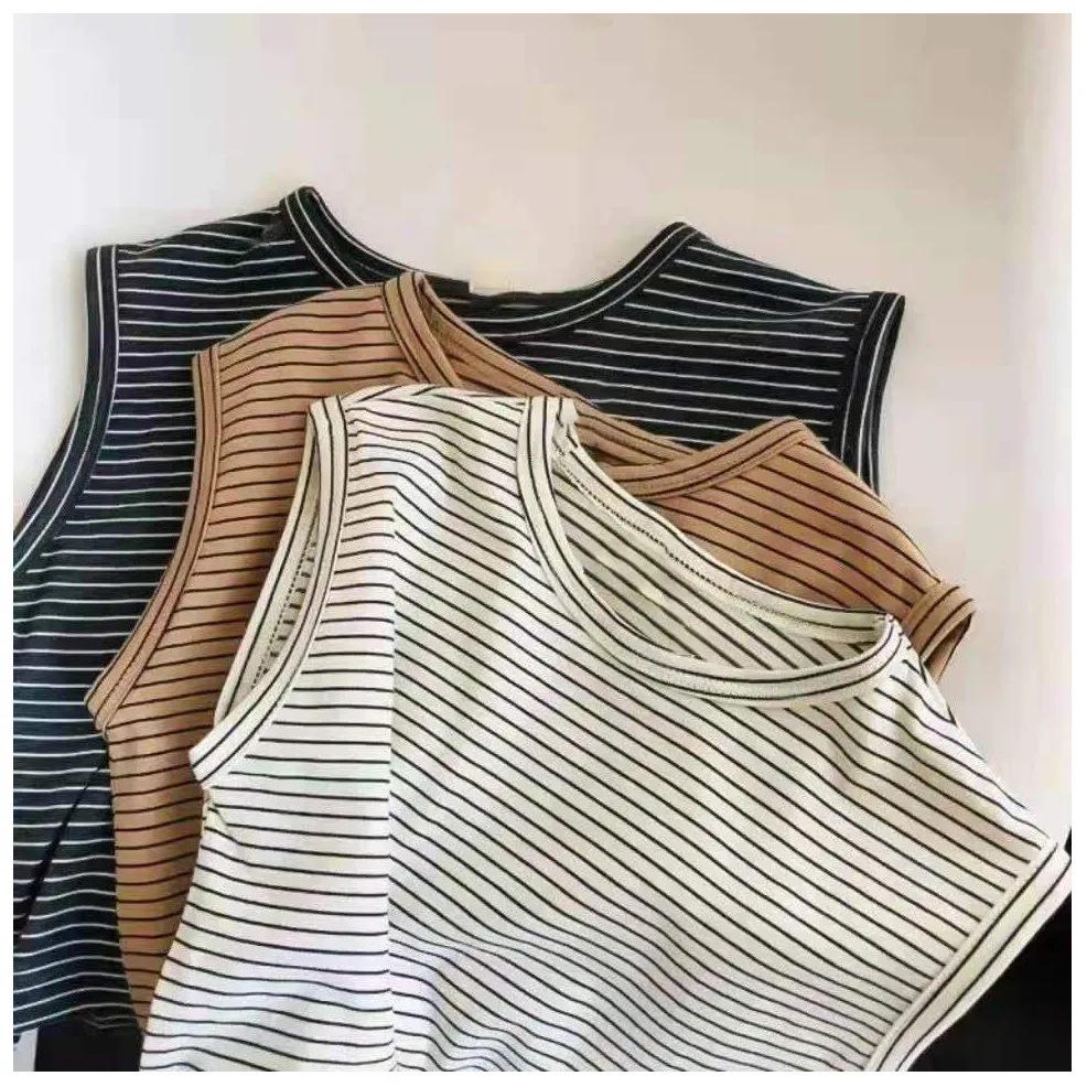 Black/whitestripes vest pure cotton fabric soft and comfortable, Mi apricotstripes vest pure cotton fabric sof...