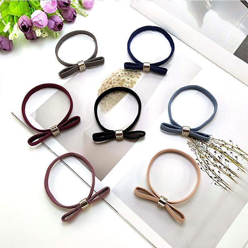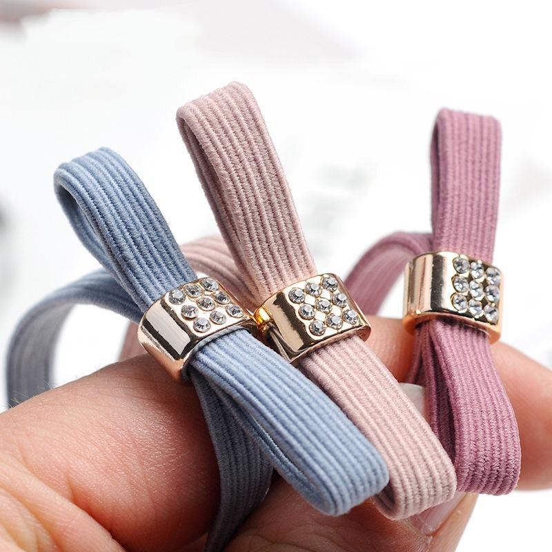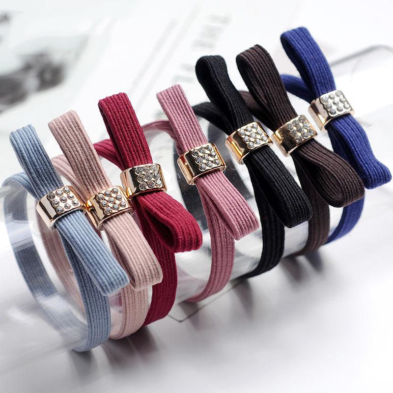 Estilo Coreano Simple Pequeño Fresco Accesorios para el Cabello Cuerda para el Cabello Lazo 9 Diamantes Anillo para el Cabello para Mujer Mori Elástico Alto Color Línea Plana Cuerda para la Cabeza