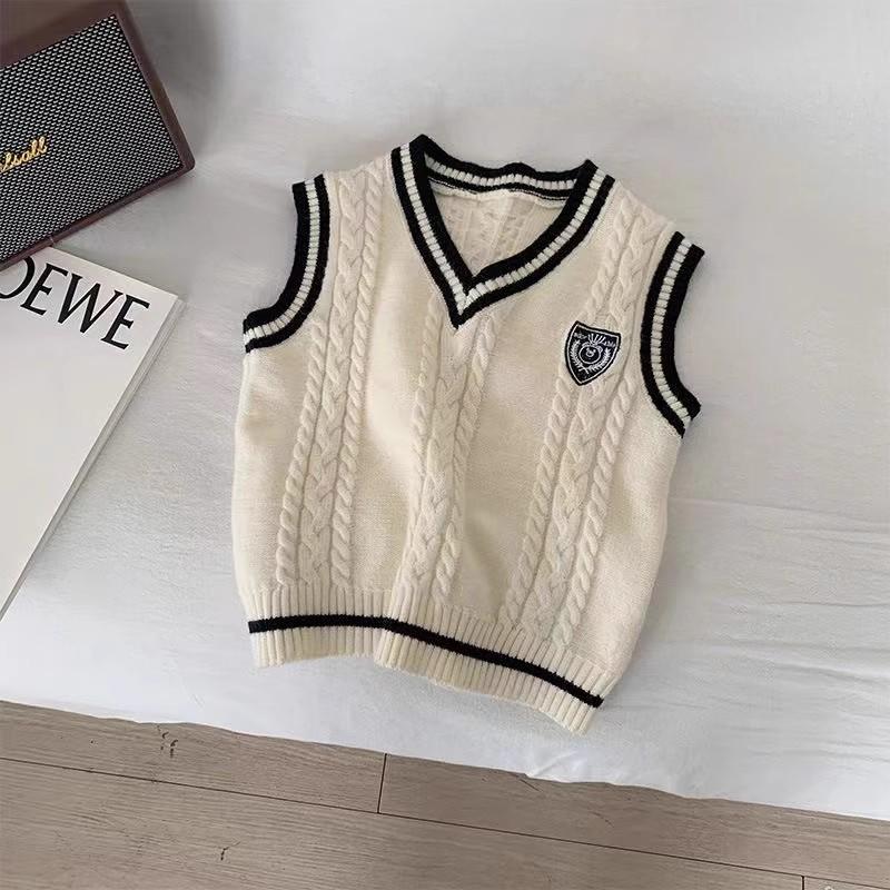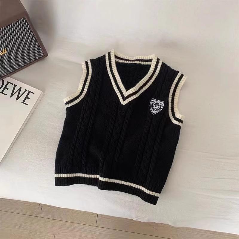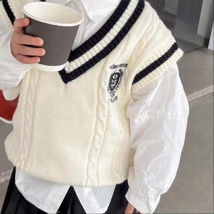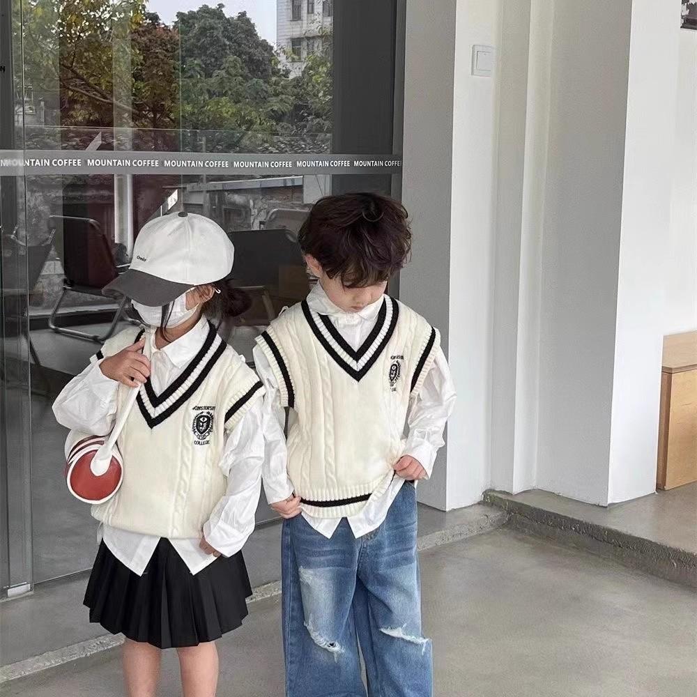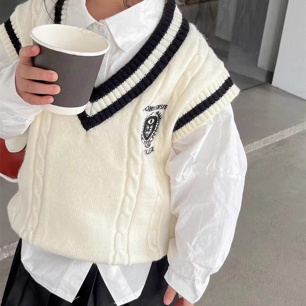 Otoño Nueva Moda Chaleco Suéter sin Mangas de Color en Contraste para Niños y Niñas Estilo Universitario Chaleco Tejido para Niños