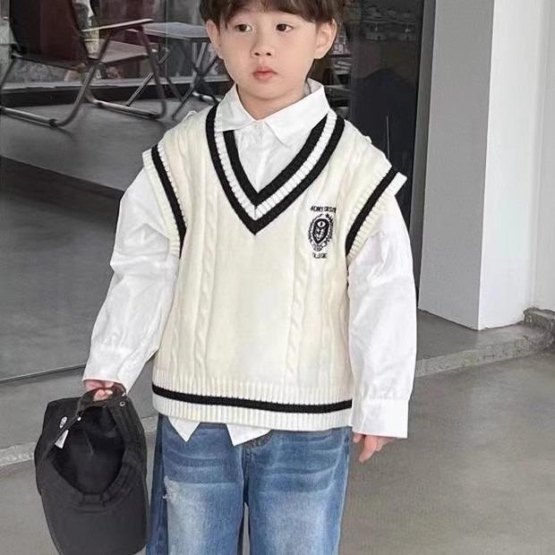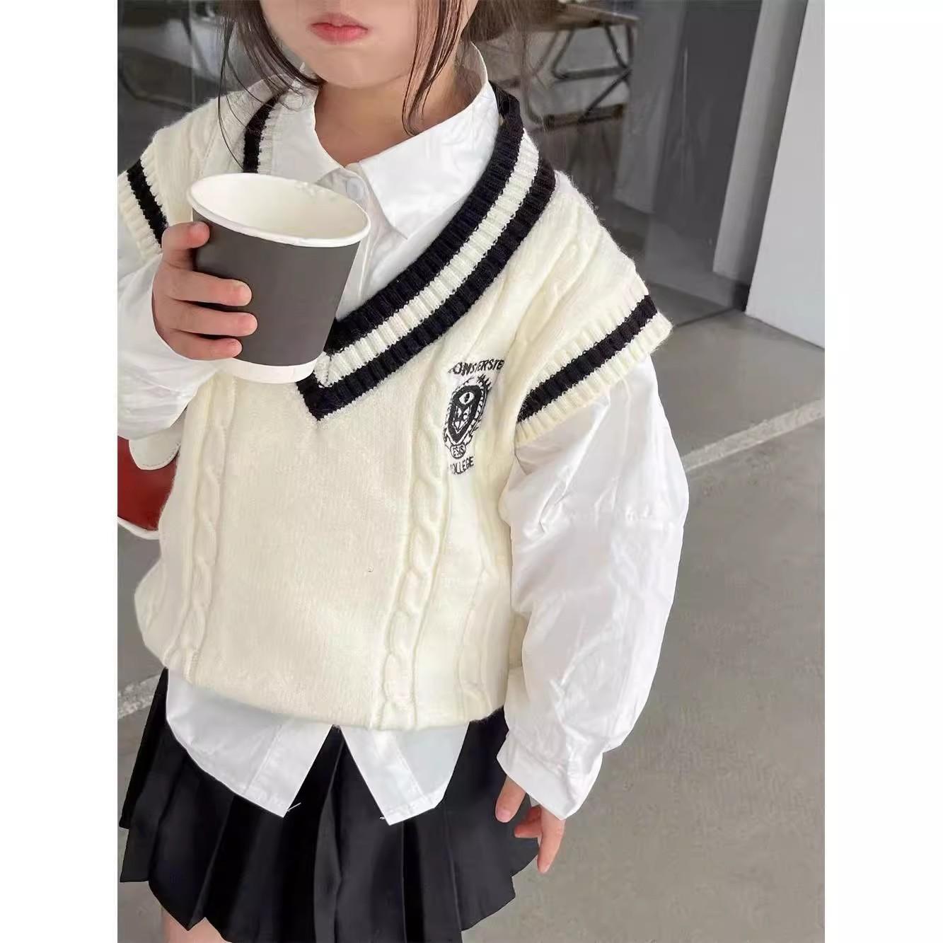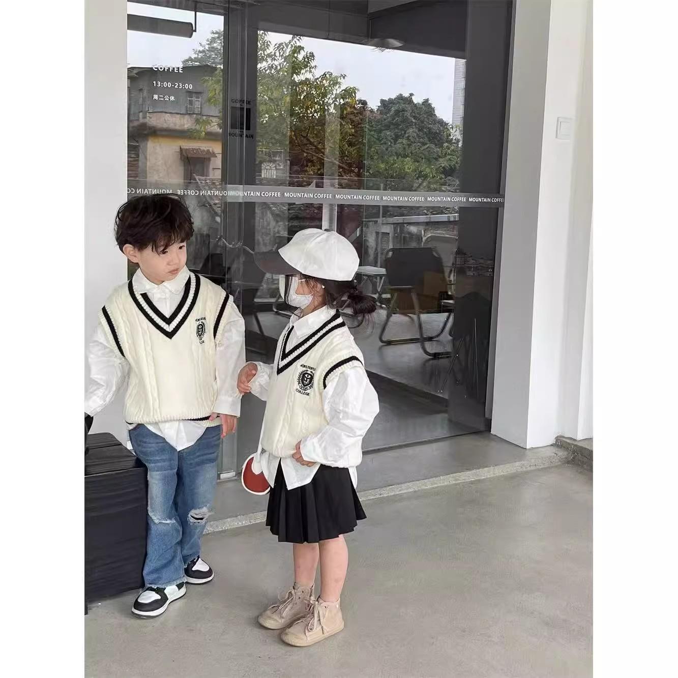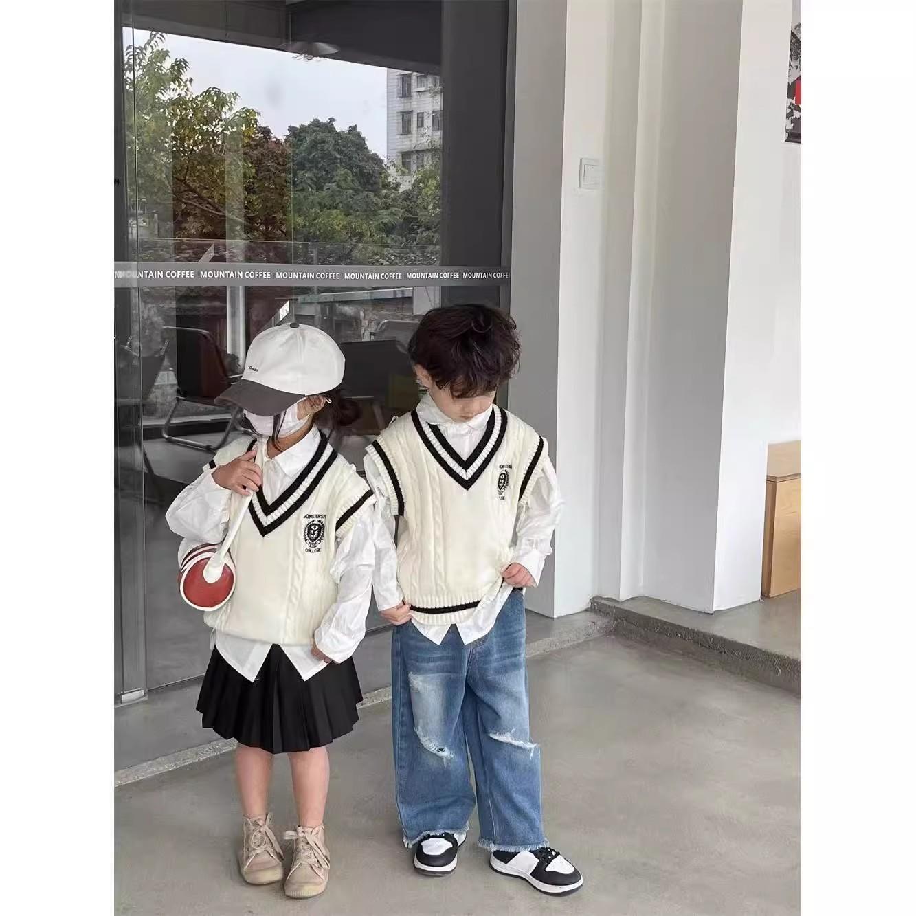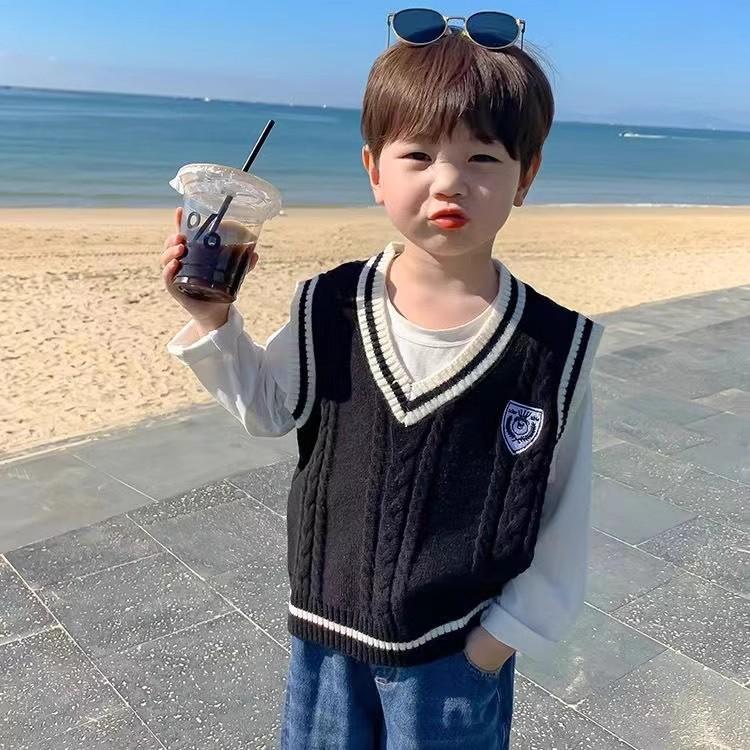 Otoño Nueva Moda Chaleco Suéter sin Mangas de Color en Contraste para Niños y Niñas Estilo Universitario Chaleco Tejido para Niños