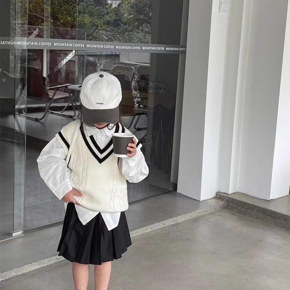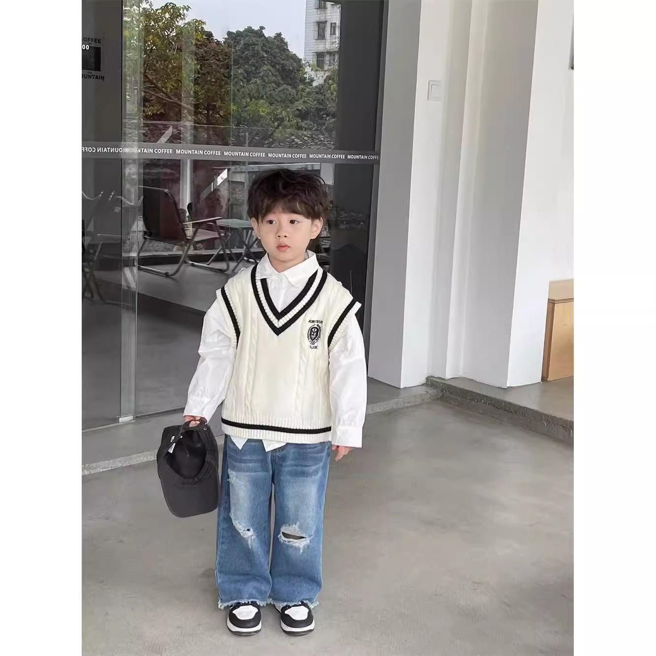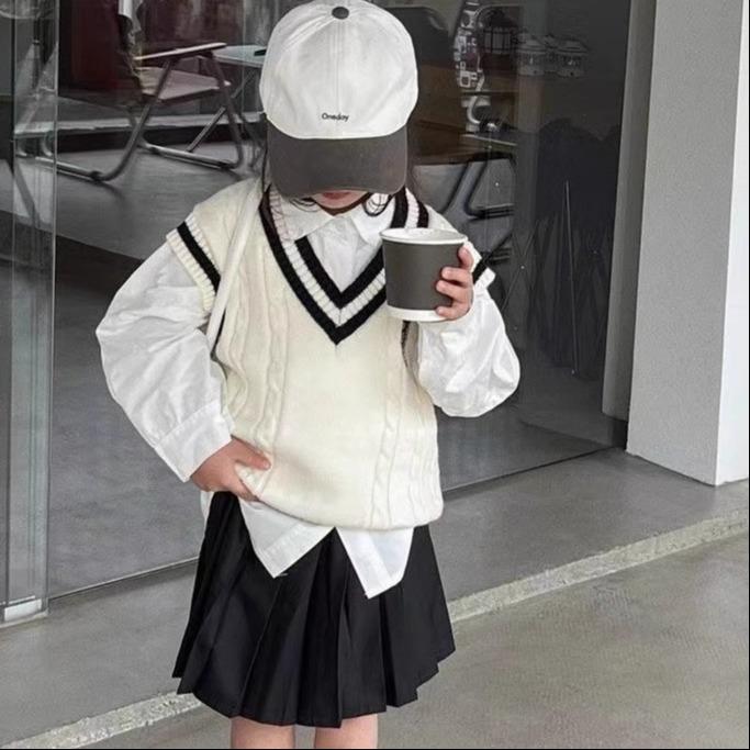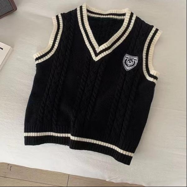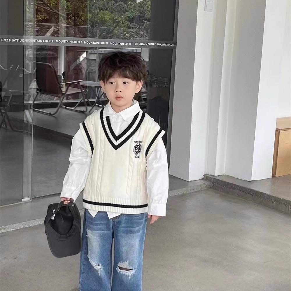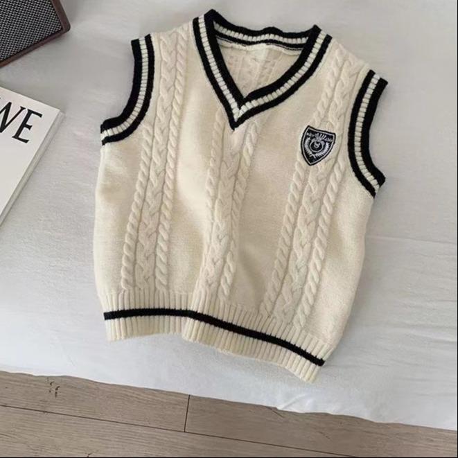 Otoño Nueva Moda Chaleco Suéter sin Mangas de Color en Contraste para Niños y Niñas Estilo Universitario Chaleco Tejido para Niños