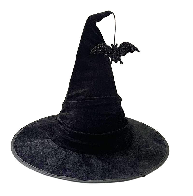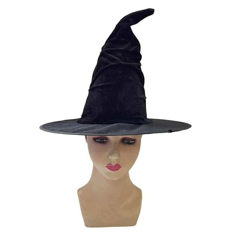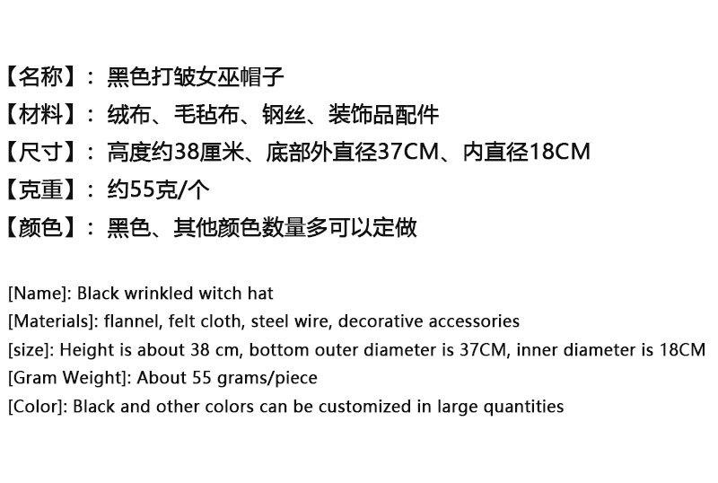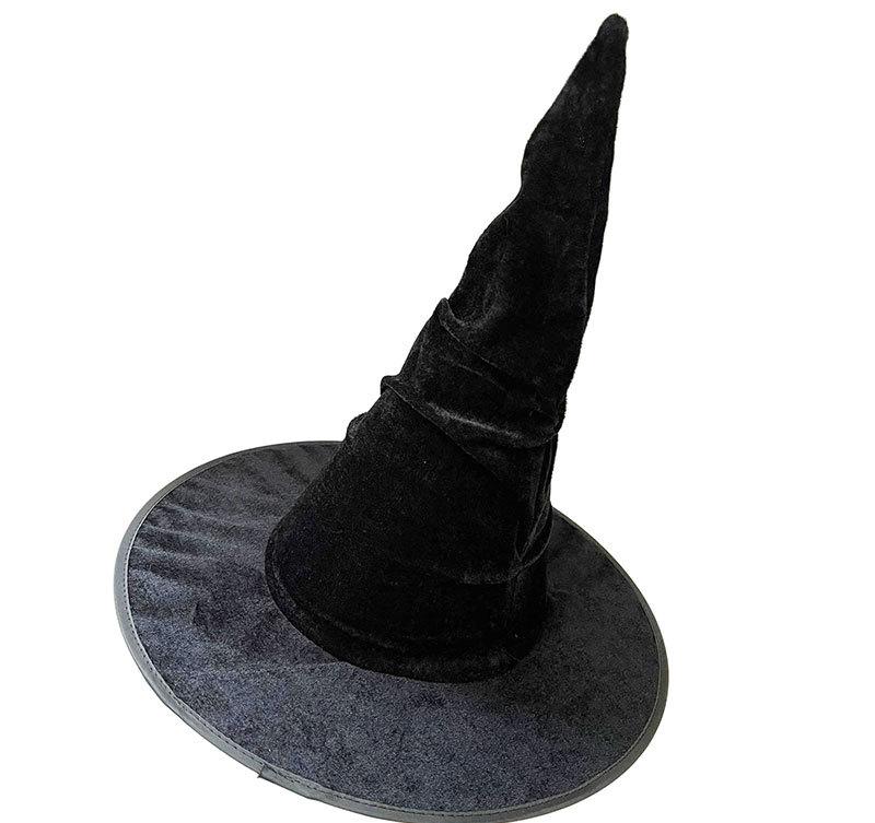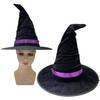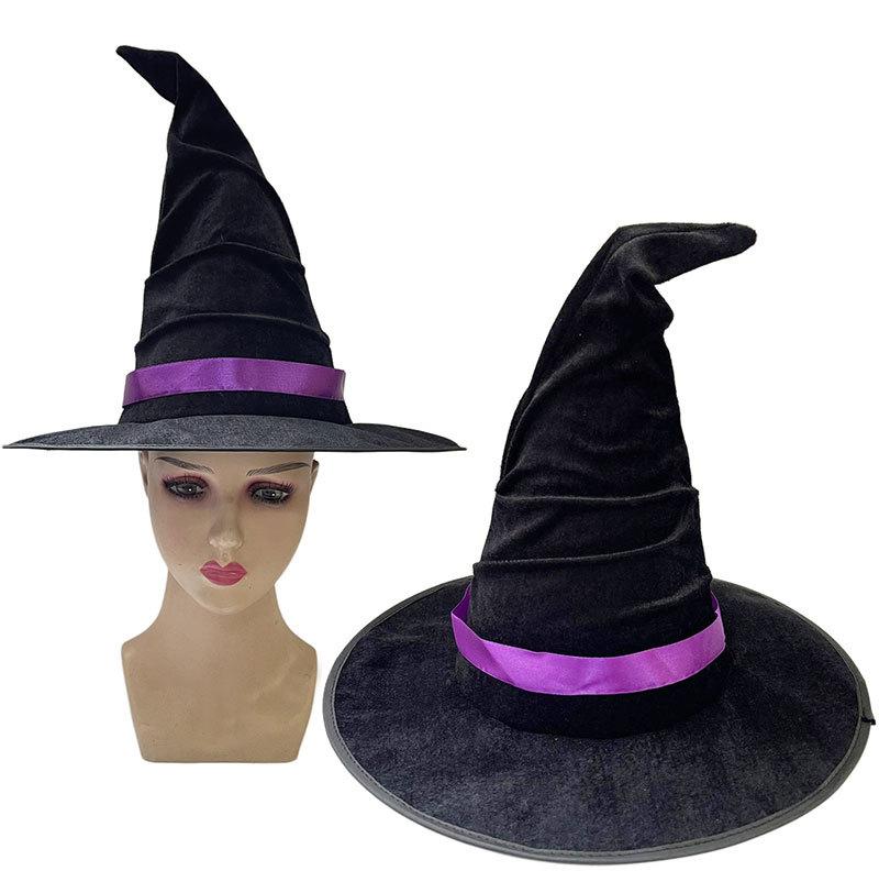Smooth velvet wrinkled witch hat: add purple ribbon