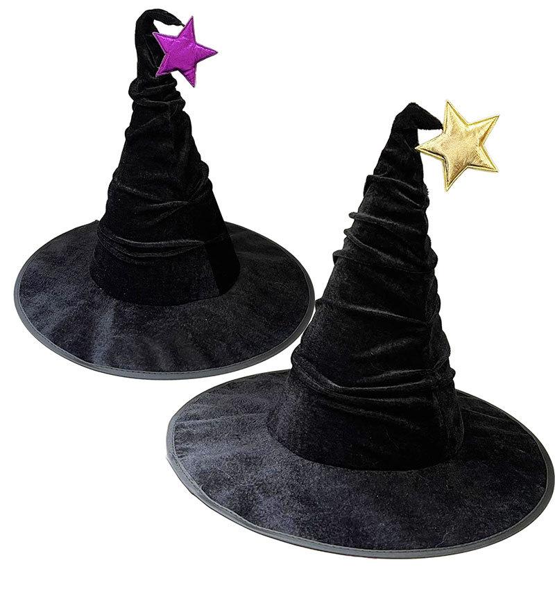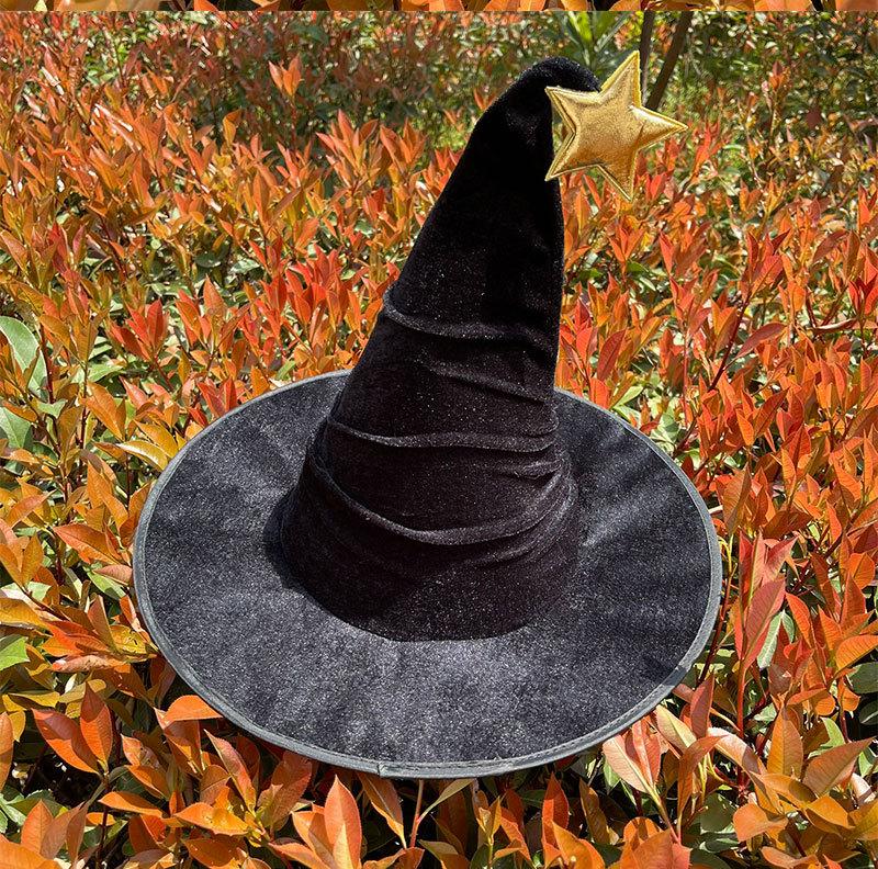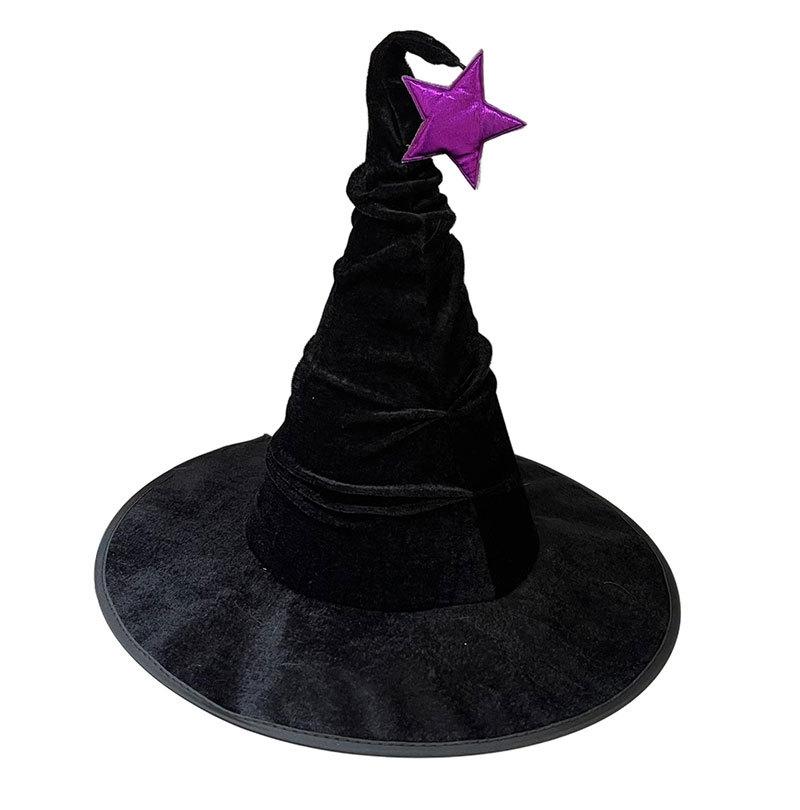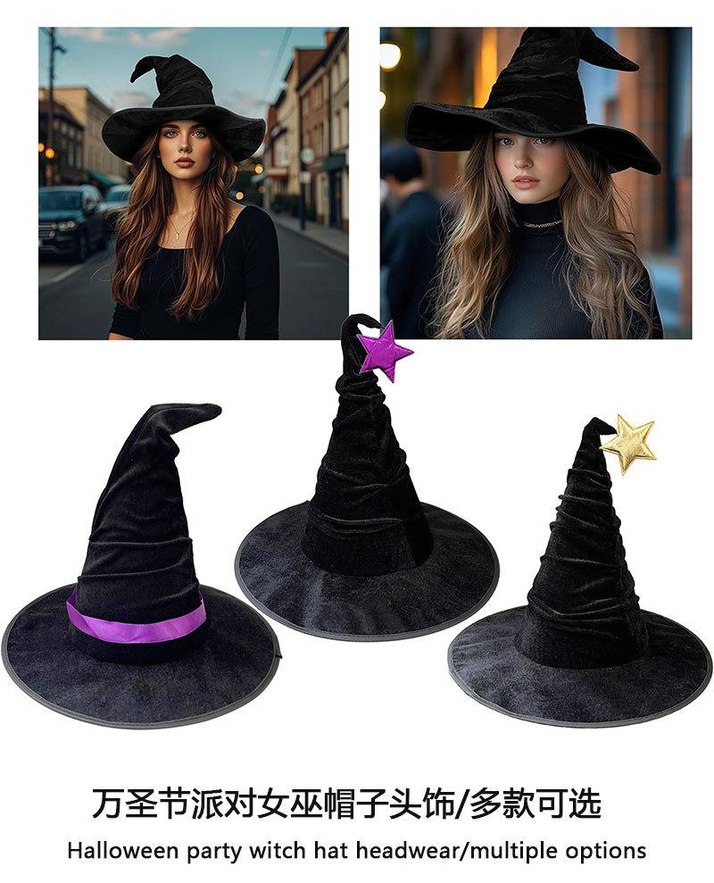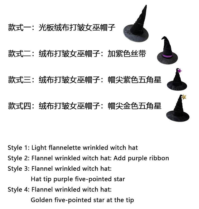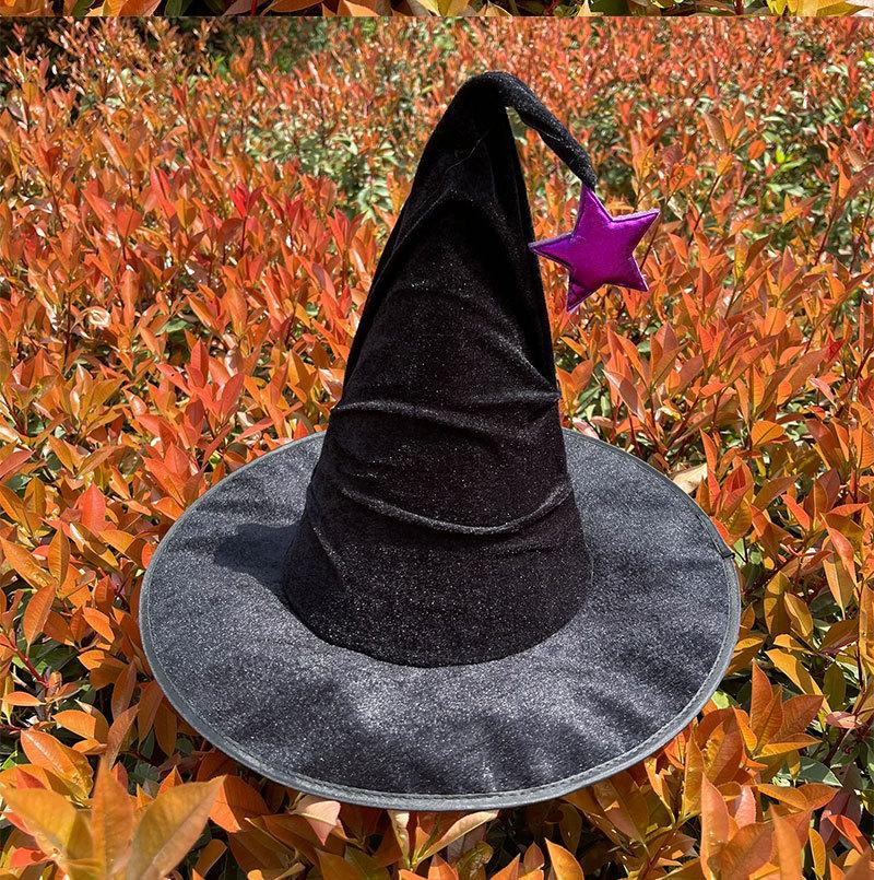 Smooth velvet wrinkled witch hat, Velvet wrinkled witch hat: add purple five-pointed star, Velvet wrinkled wit...