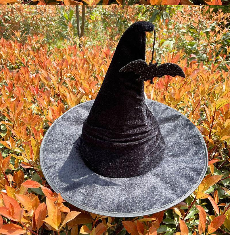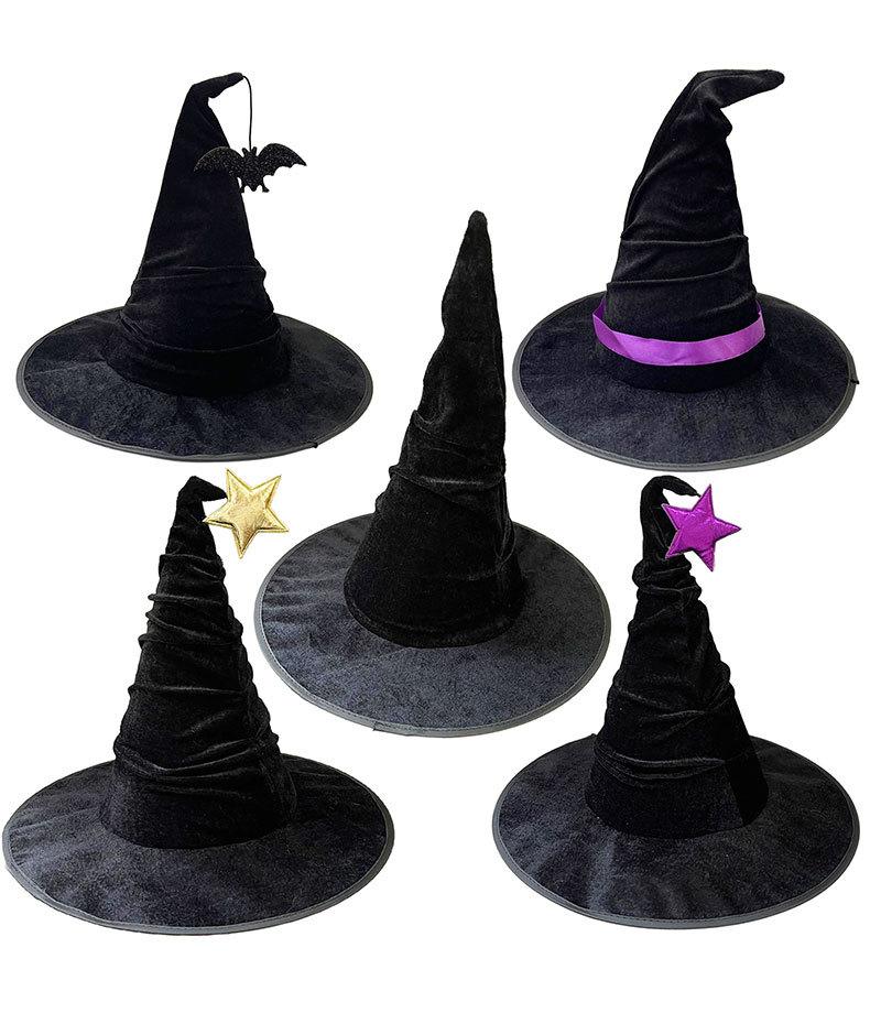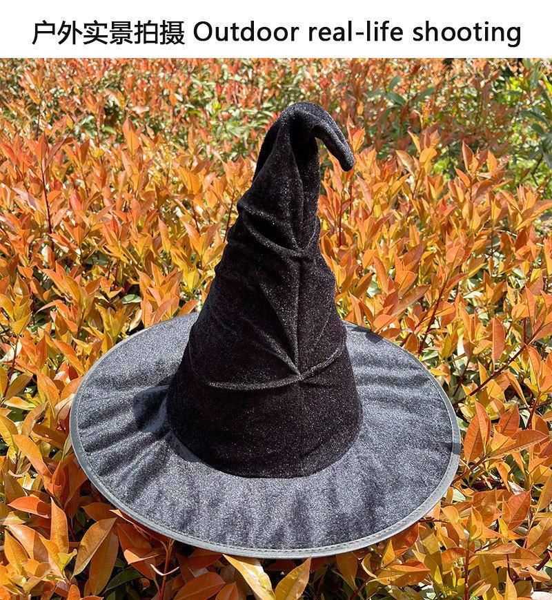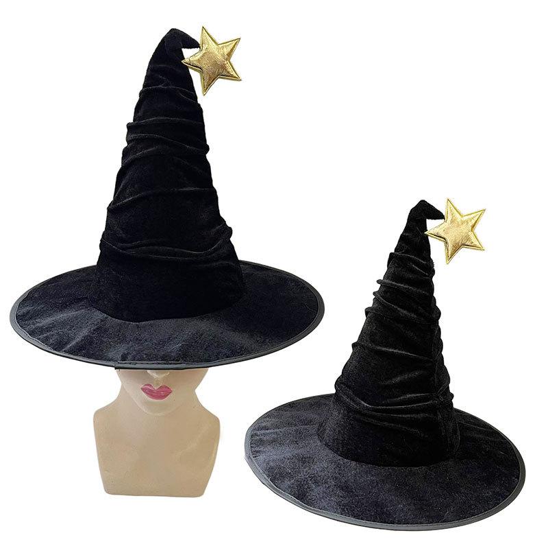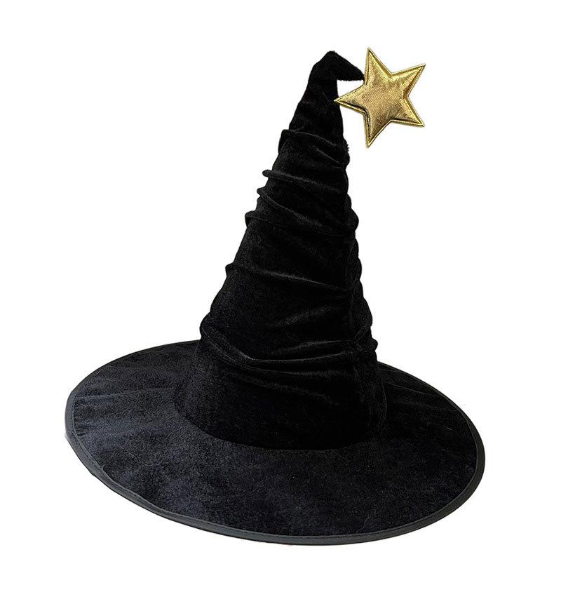 Smooth velvet wrinkled witch hat, Velvet wrinkled witch hat: add purple five-pointed star, Velvet wrinkled wit...