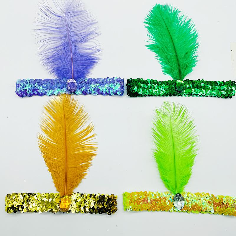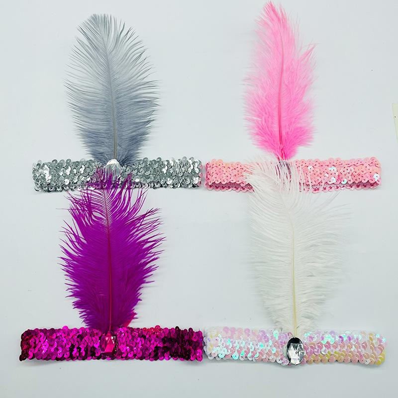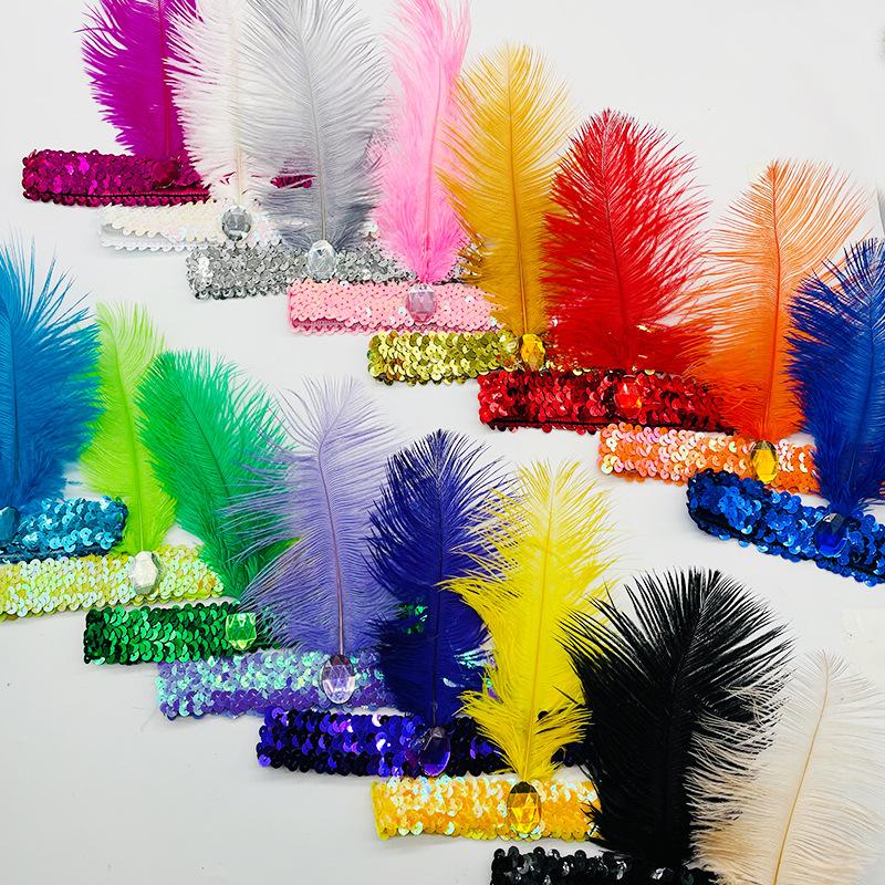 Transfronterizo para pluma de avestruz elástico lentejuelas con diamante pluma tocado cos rendimiento tocado indio fabricantes venta al por mayor