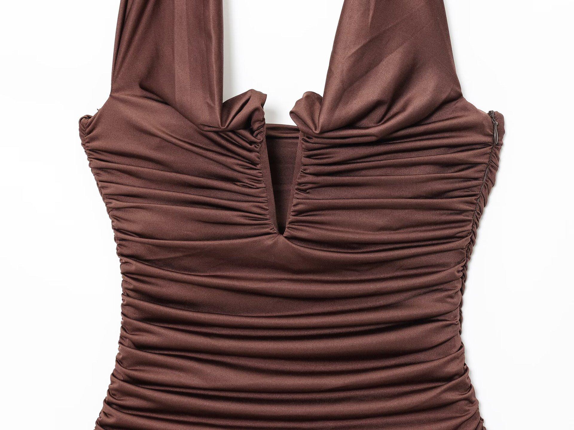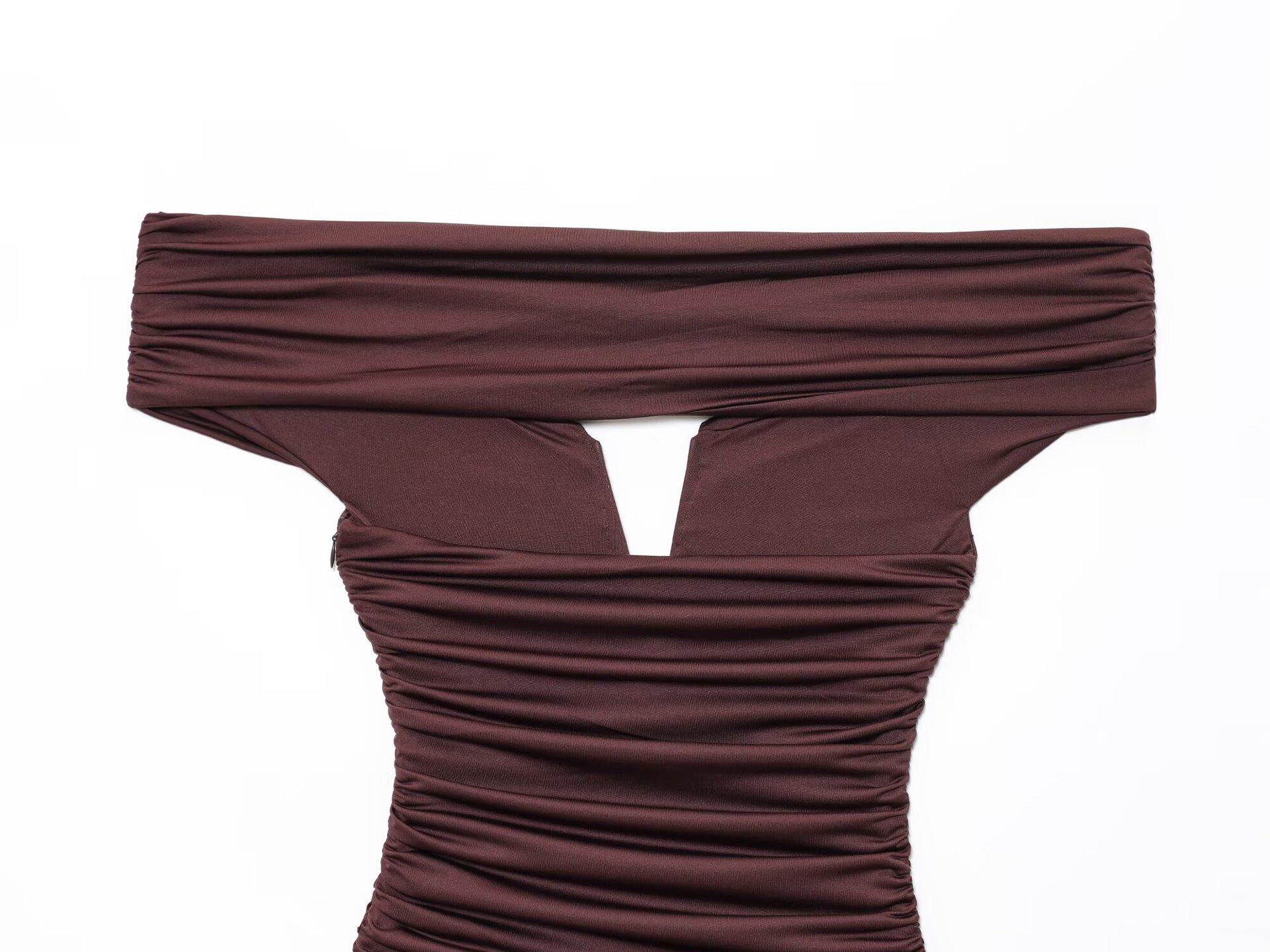 Mono fruncido de verano 2025 nuevo europeo y americano transfronterizo para mujer, con hombros descubiertos, corte ajustado y diseño único