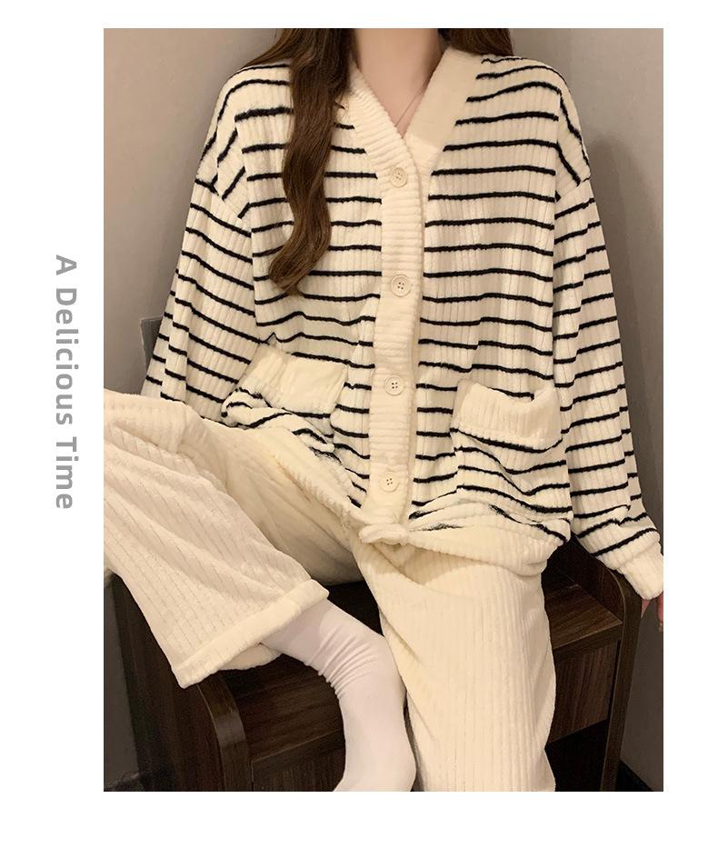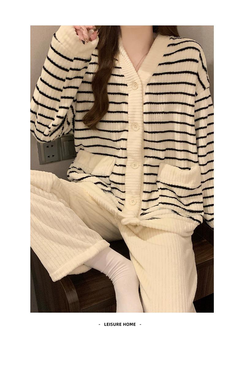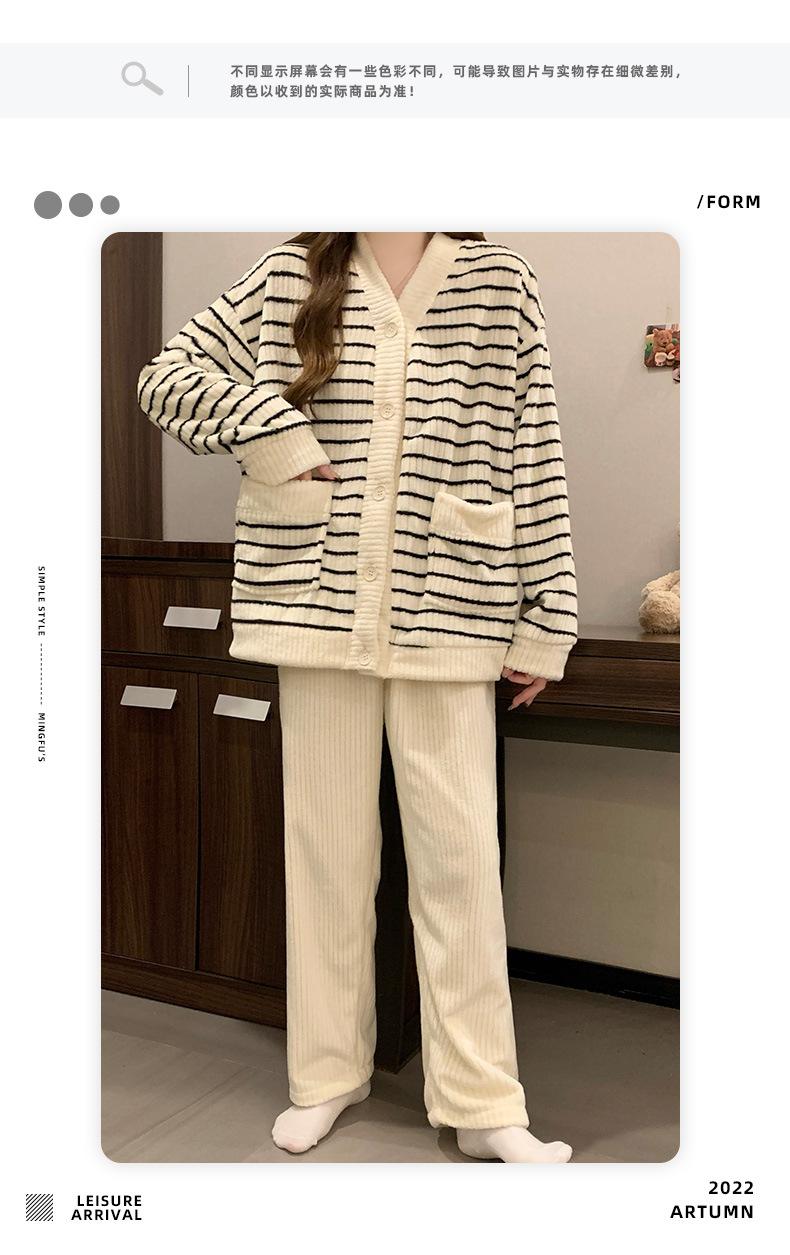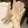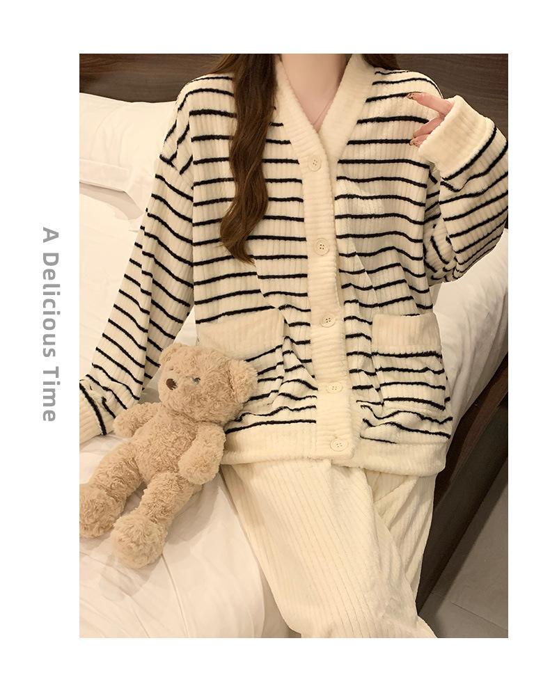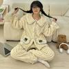 Pijama de Franela para Mujer, Cárdigan Nuevo de Otoño e Invierno, Traje Grueso de Vellón Coral, Ropa Exterior de Invierno, Ropa para el Hogar de Niña