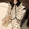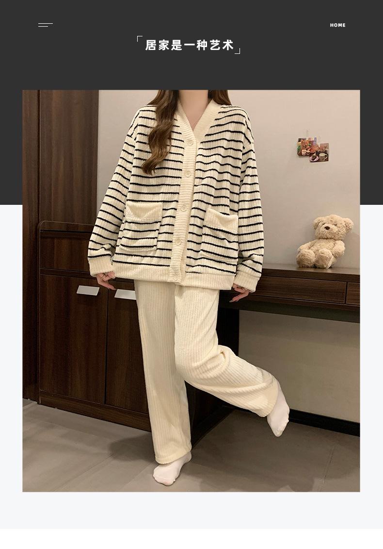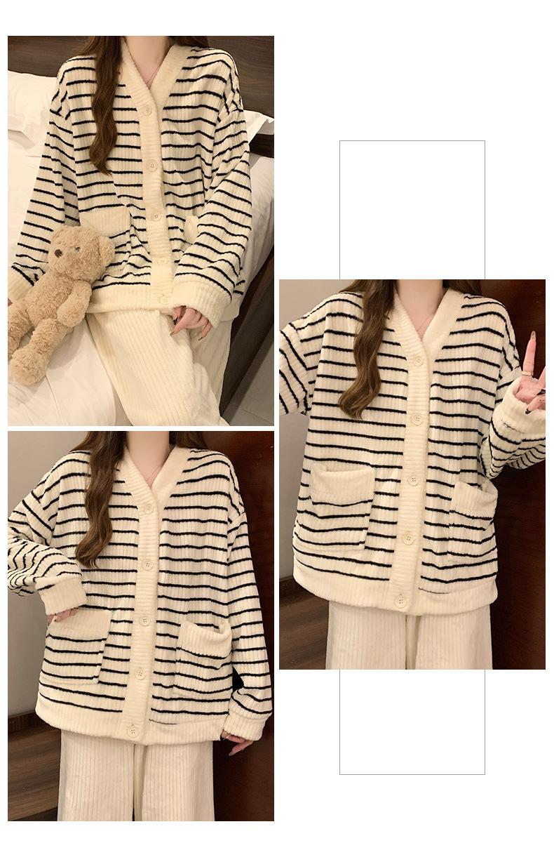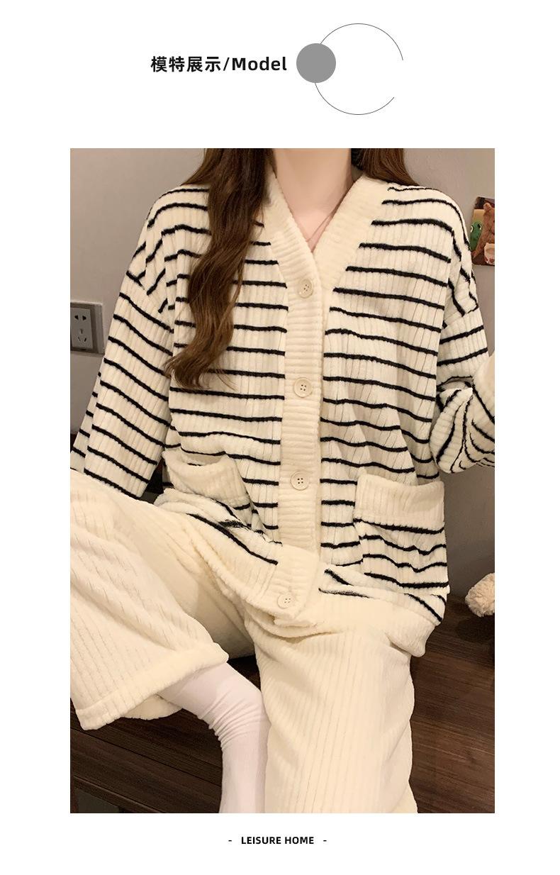 Pijama de Franela para Mujer, Cárdigan Nuevo de Otoño e Invierno, Traje Grueso de Vellón Coral, Ropa Exterior de Invierno, Ropa para el Hogar de Niña