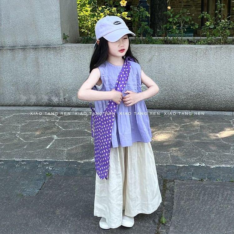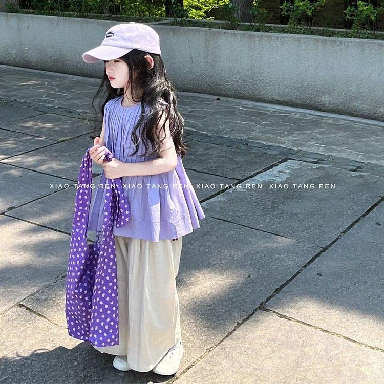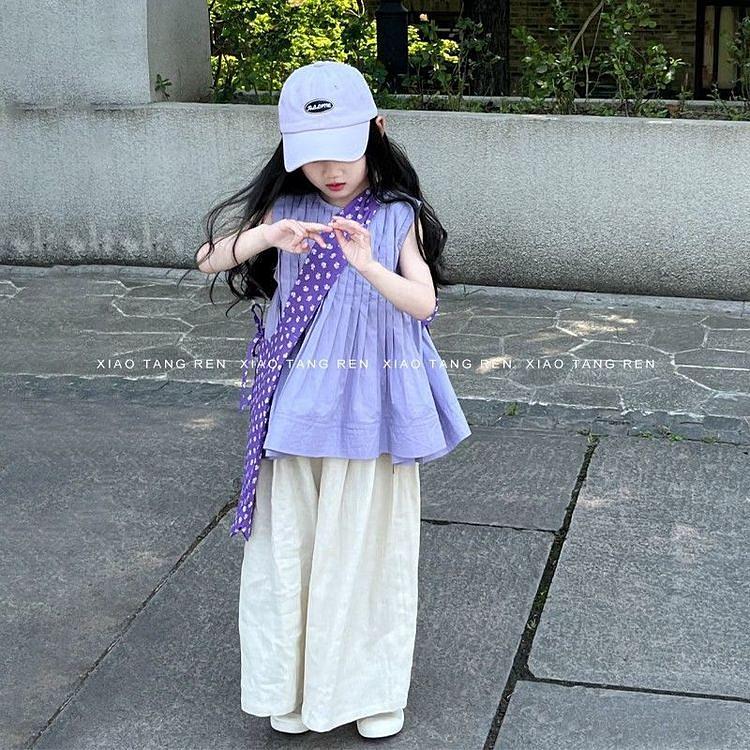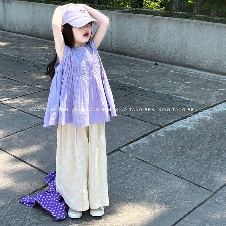 Camisola plisada elegante para niños pequeños y medianos de estilo coreano 2025 Nuevo verano Moda para niñas pequeñas Nicho Top sin mangas