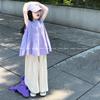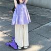 Purple top, Off-white wide-leg pants, Purple top + off-white wide-leg pants [suit]