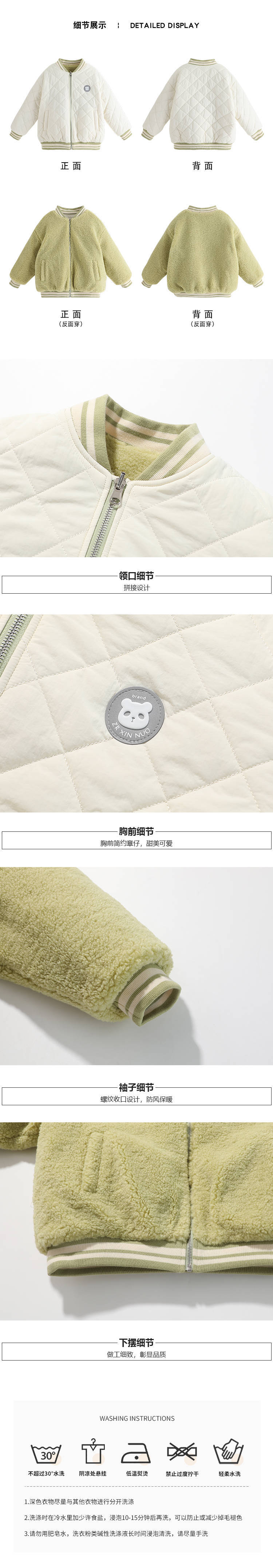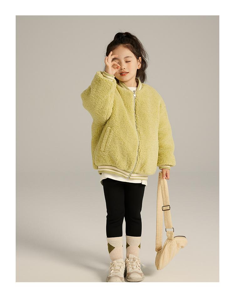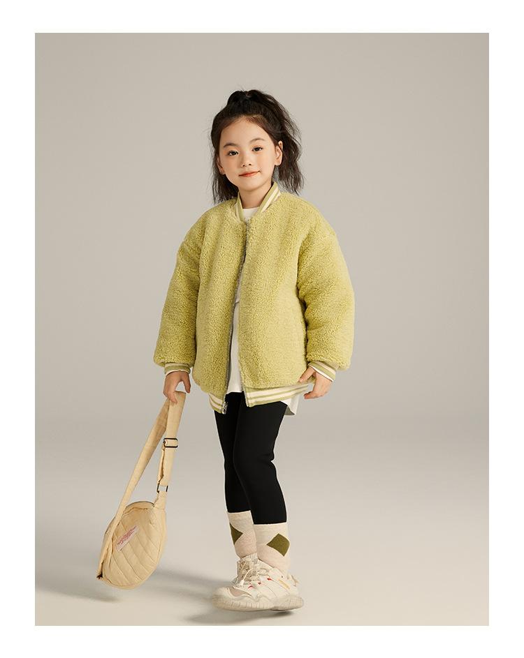 2023 Nuevo Otoño e Invierno Chaqueta de Cachemira para Niños Usable por Ambos Lados Estilo Coreano para Niñas Chaqueta Top de Algodón Plisado para Bebé