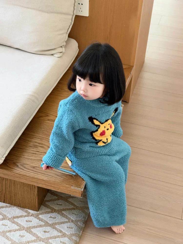 Pijamas de Terciopelo para Niños 24 Otoño e Invierno Nuevo Bebé Lindo Dibujos Animados Tops y Pantalones Conjunto de Dos Piezas Dividido para el Hogar