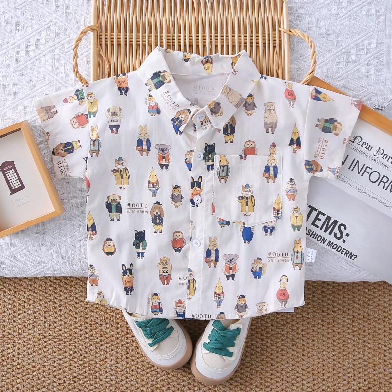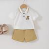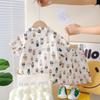 Traje de verano de manga corta para niño 2025 Nuevo Guapo Vestido de verano delgado para niños Camisa para bebé y niños Conjunto de dos piezas