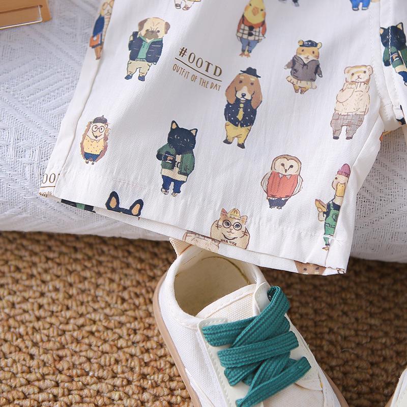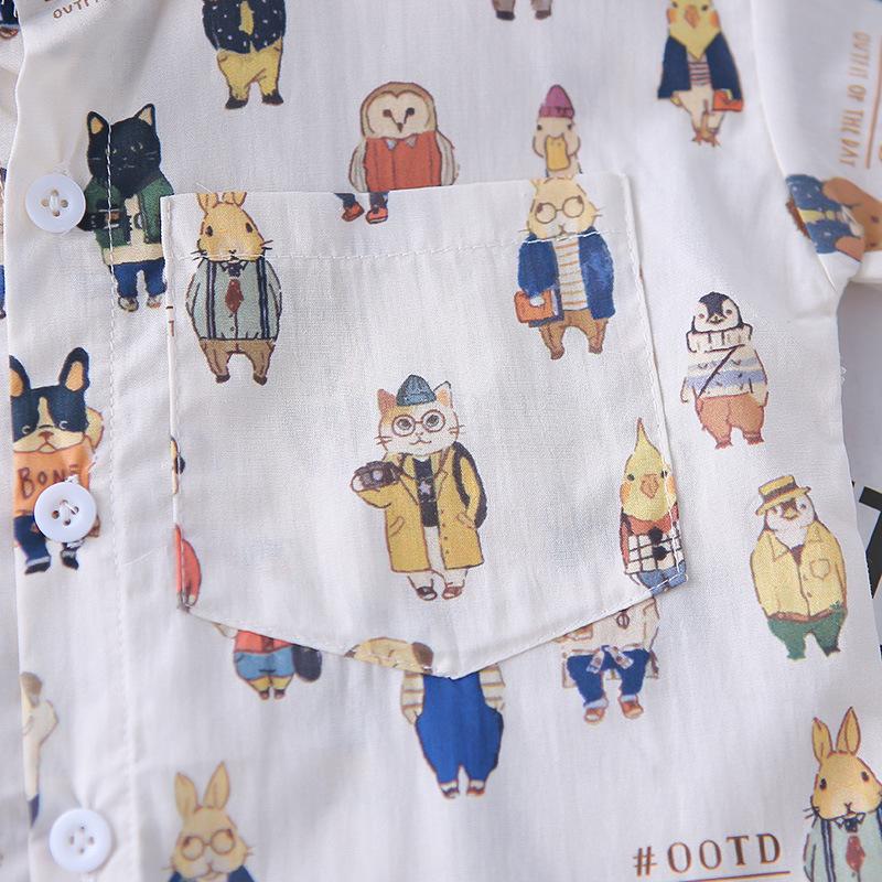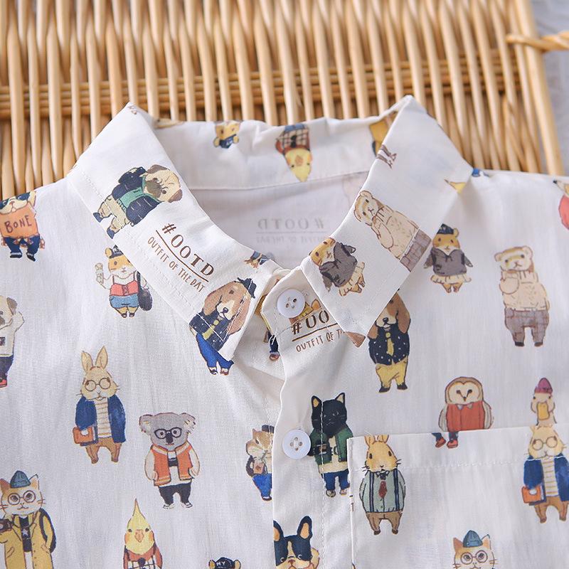 White x25071-all-over printed animal shirt short-sleeved two-piece set