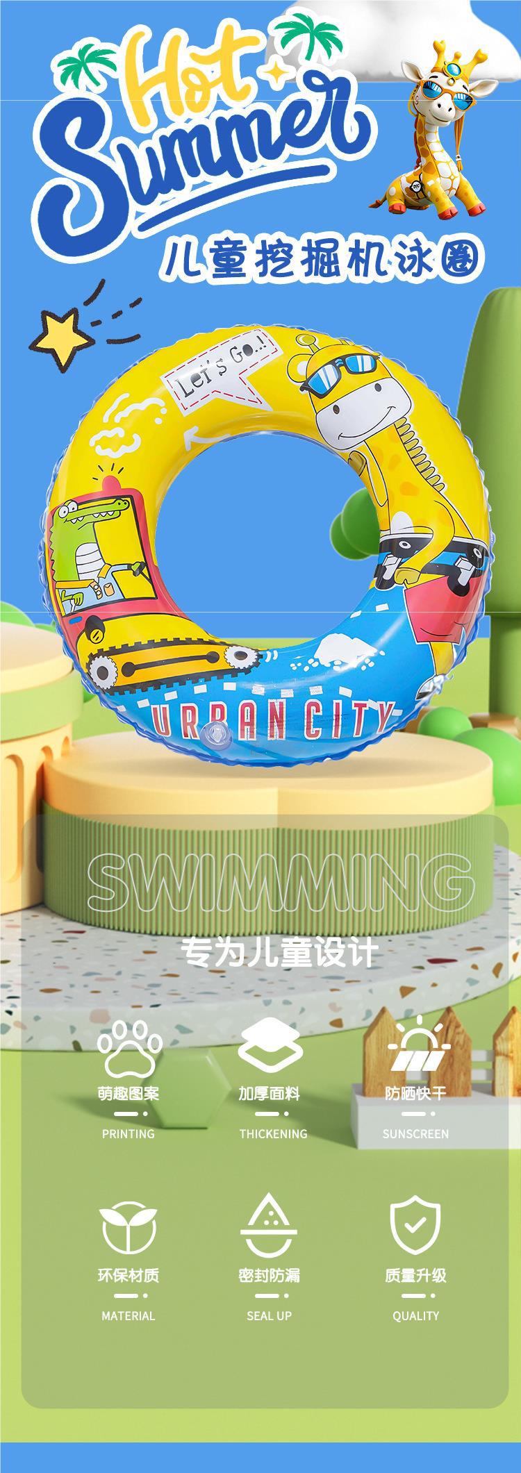 Salvavidas Grueso Nuevo Bebé Niña Niño Anillo de Natación Excavadora Dibujos Animados Principiante Lindo Inflable de Axila