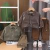 Traje de camisa para niño 2025 Nuevo Primavera y Otoño Moda Infantil Estilo Occidental Abrigo Conjunto de Tres Piezas Casual Suelto para Niño Trendy