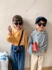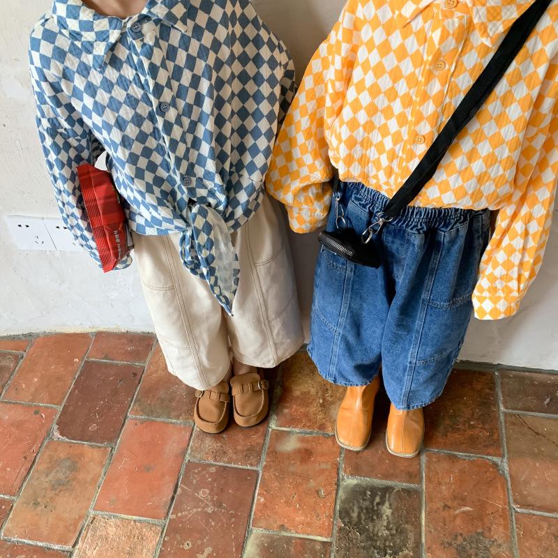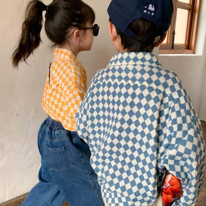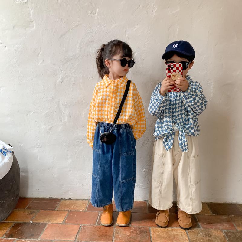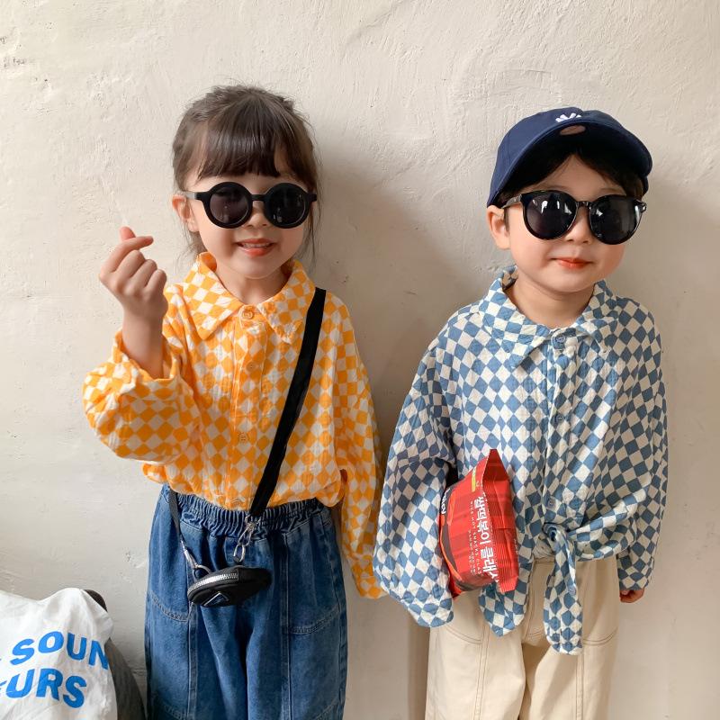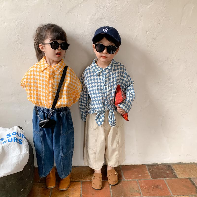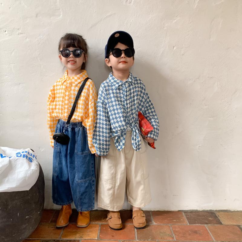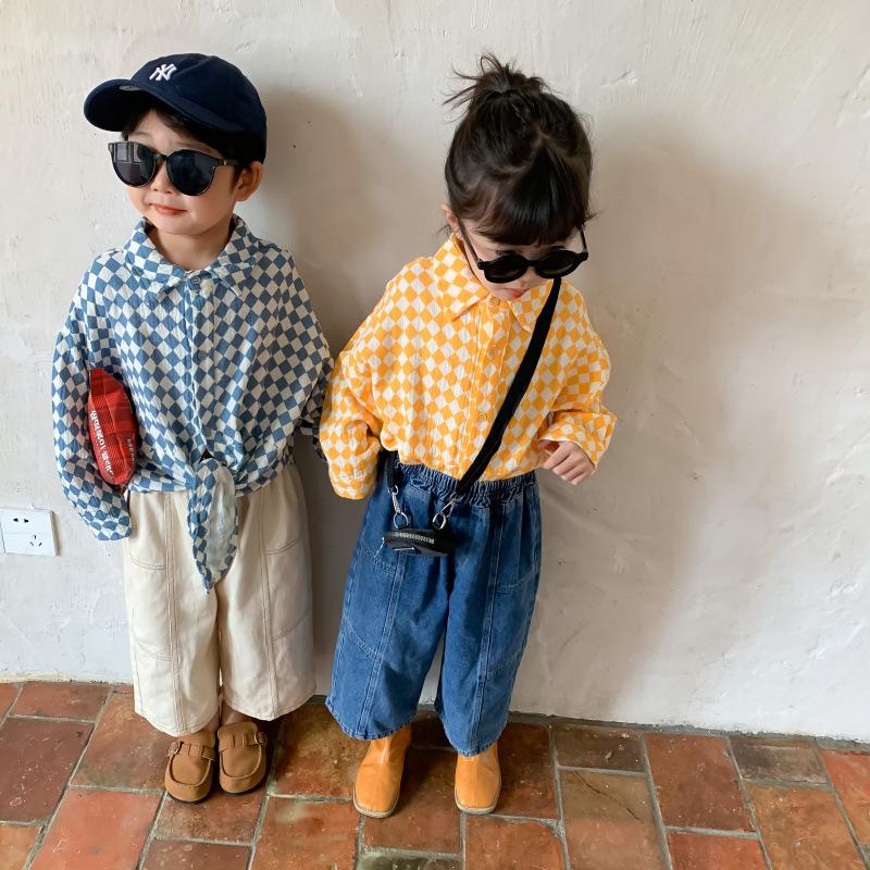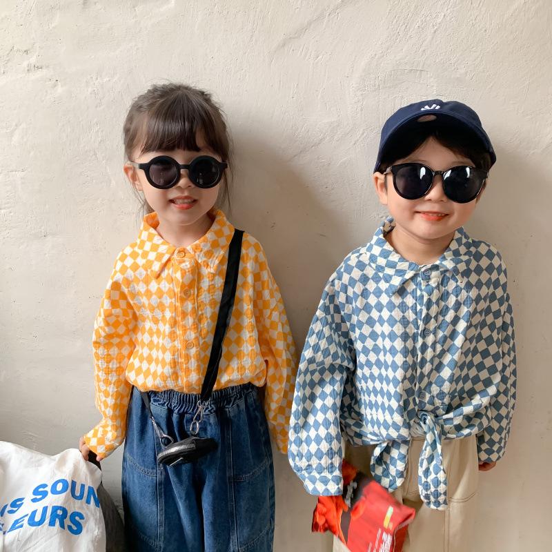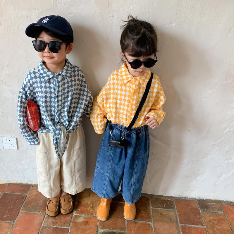 Camisa para Niños Primavera 2025 Estilo Coreano Niños y Niñas Camisa de Cuadros Lar Estilo Occidental para Niños Top Casual de Manga Larga Holgado