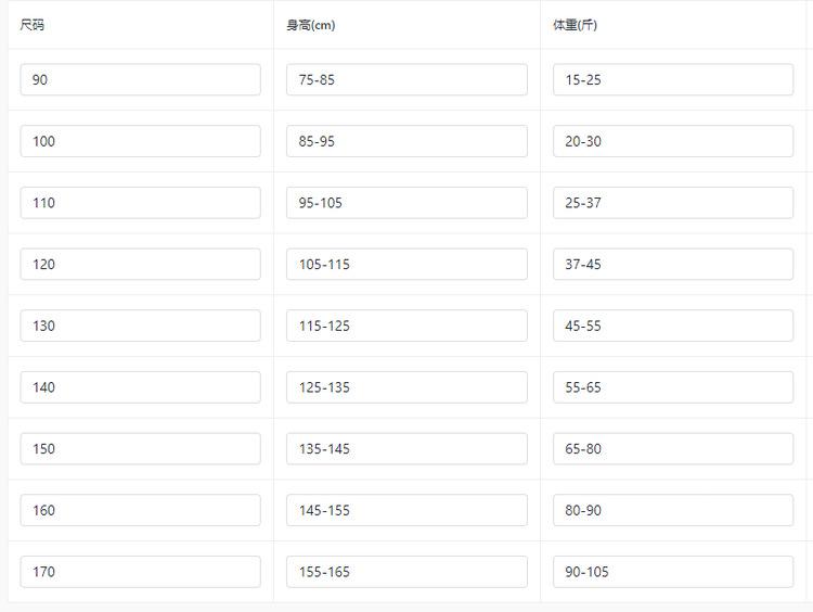 80, 90, 100, 110, 120, 130, 140, 150, 160, 170