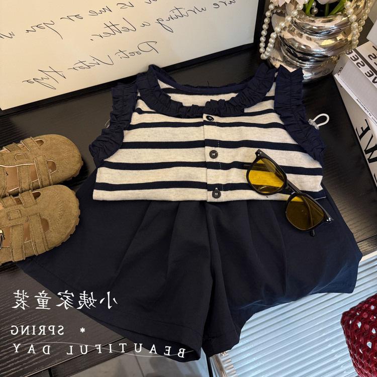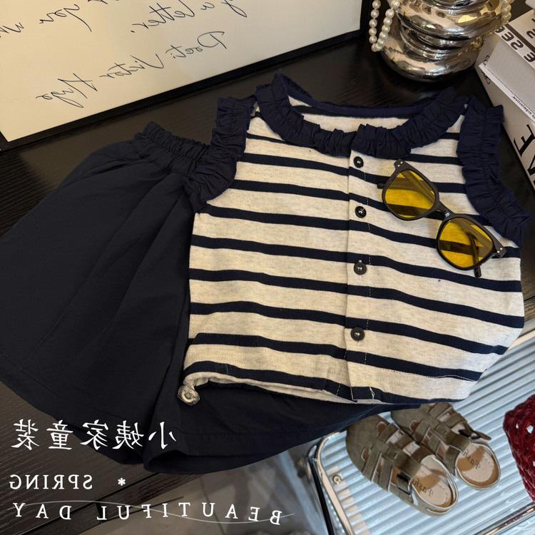 2025 Nuevo Verano Delgado Rayas Sin Mangas Chaleco de un Solo Botón para Niñas Tops Casuales Versátiles de Estilo Coreano para Niños