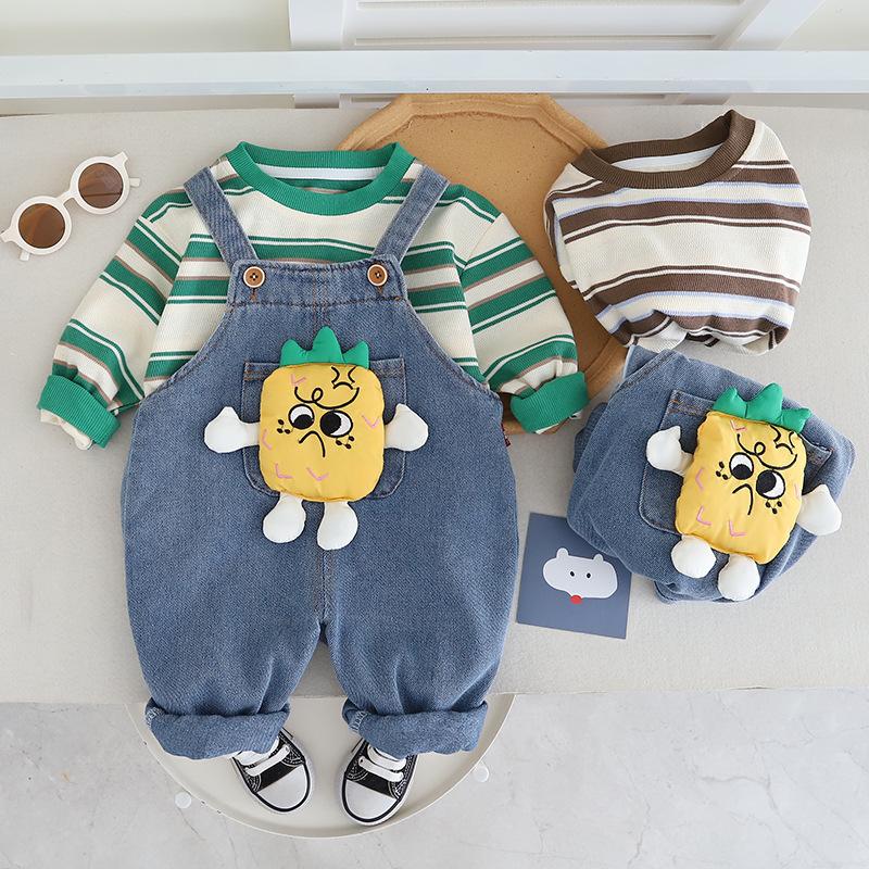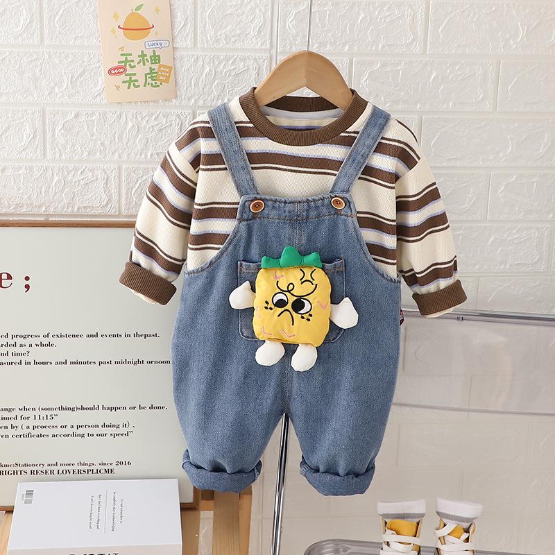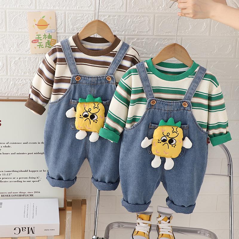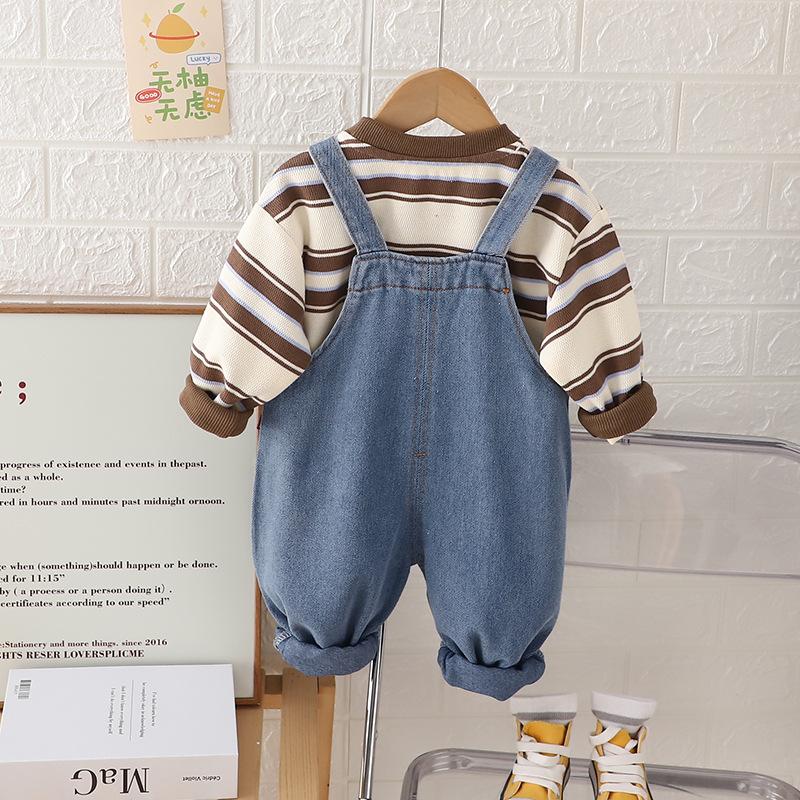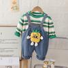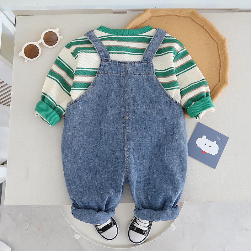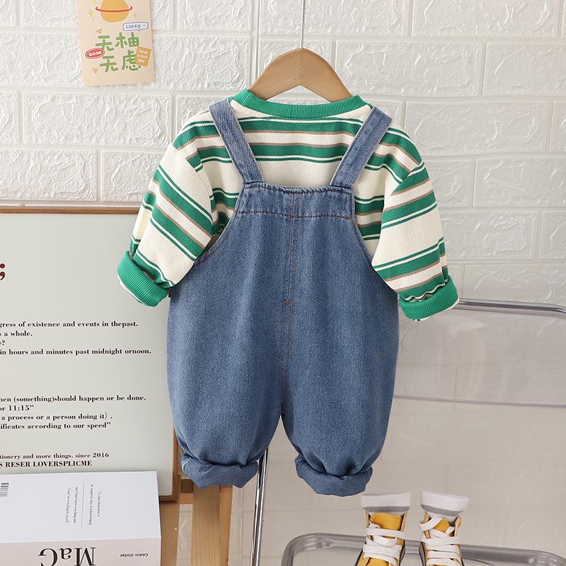 Traje de Otoño para Niños y Niñas Pantalones con Tirantes Niños Estilo Coreano Manga Larga Moda Infantil Primavera y Otoño Conjunto de Dos Piezas para Bebé