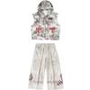 A90 white ink vest + k10 floral gray trousers