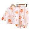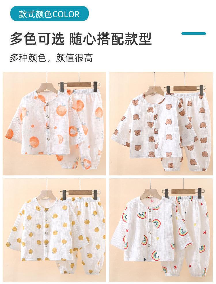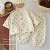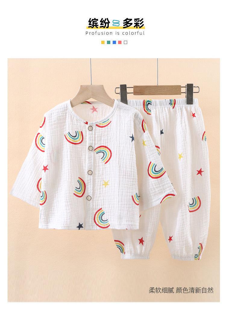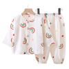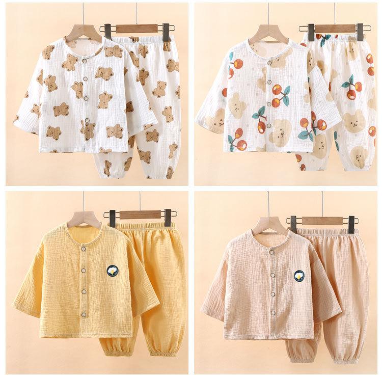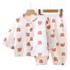 Pijama Delgado de Doble Capa de Gasa de Algodón Puro para Niños, Ropa de Descanso para Niñas, Conjunto de Pantalones Linterna de Manga Larga para Niños, Absorbente del Sudor