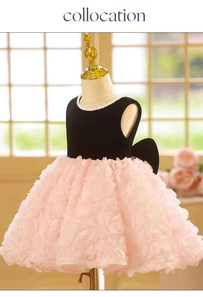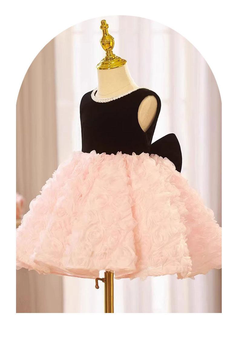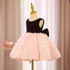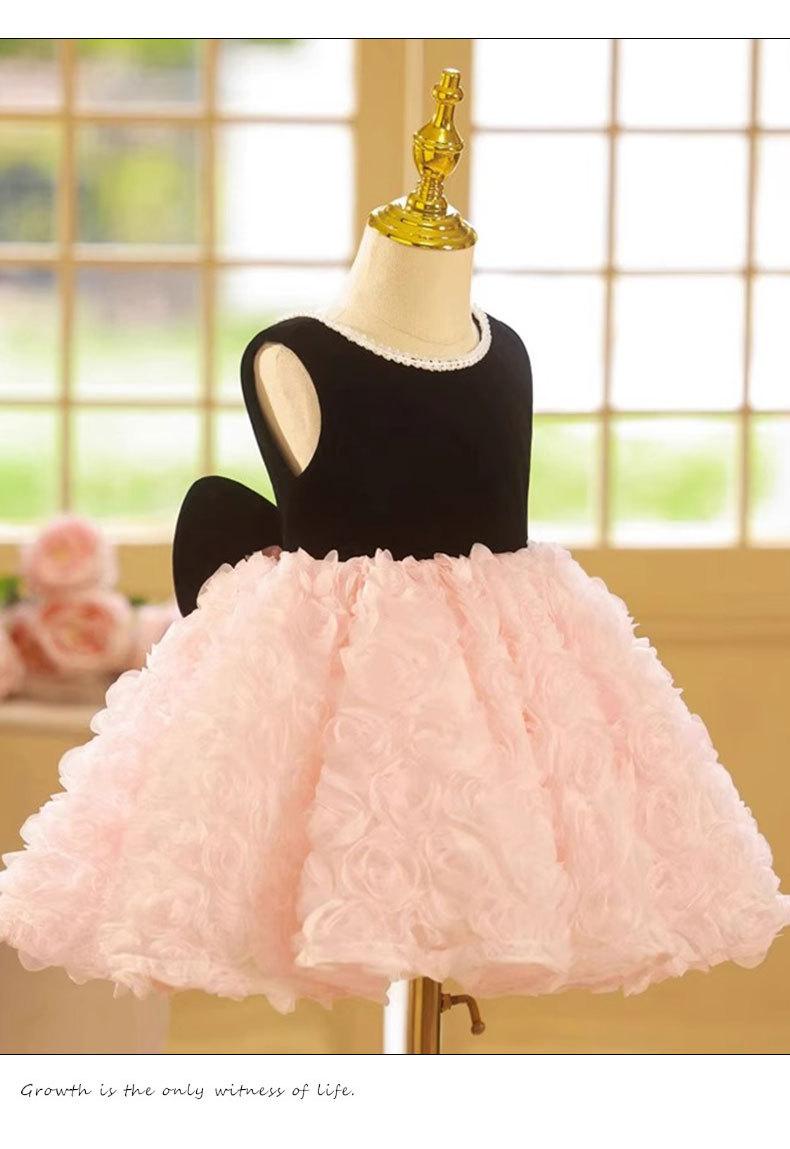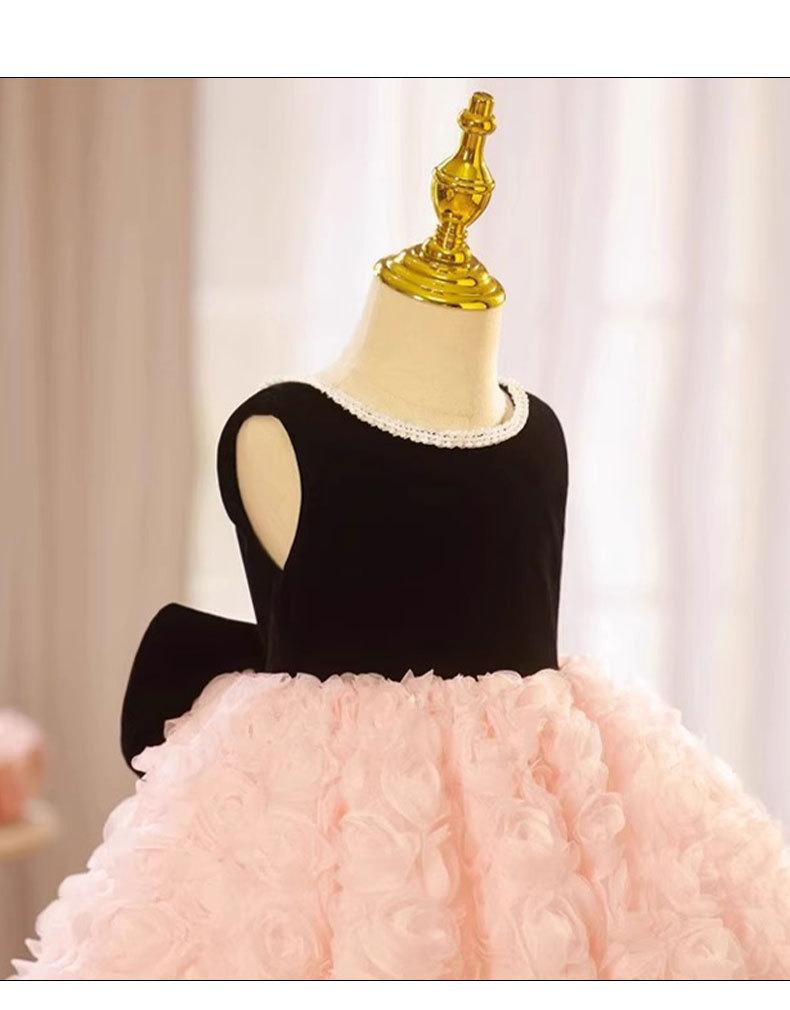 Vestido de un año para el cumpleaños de niña, Vestido de princesa para boda de niña de las flores rosa de verano, Pequeño anfitrión infantil