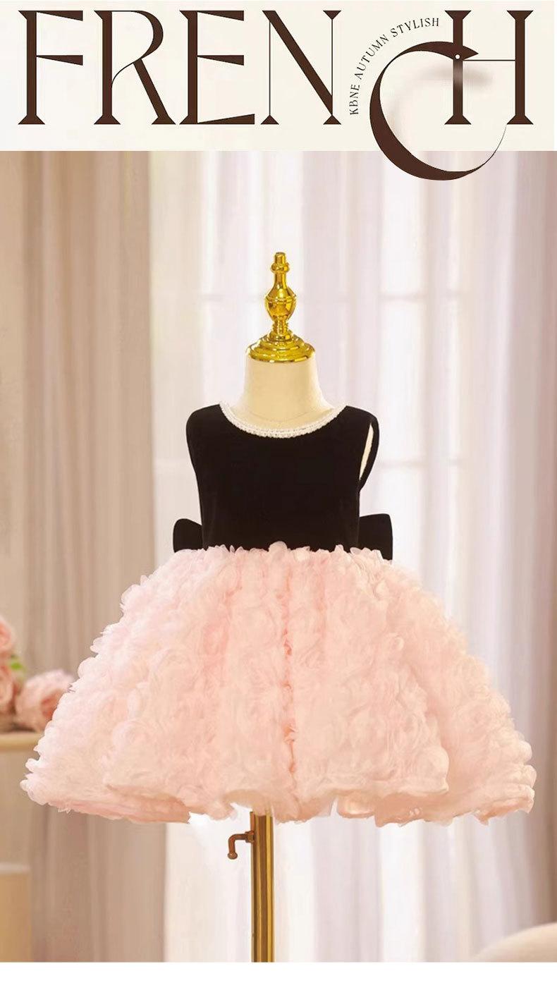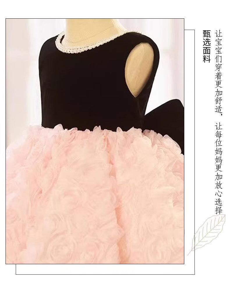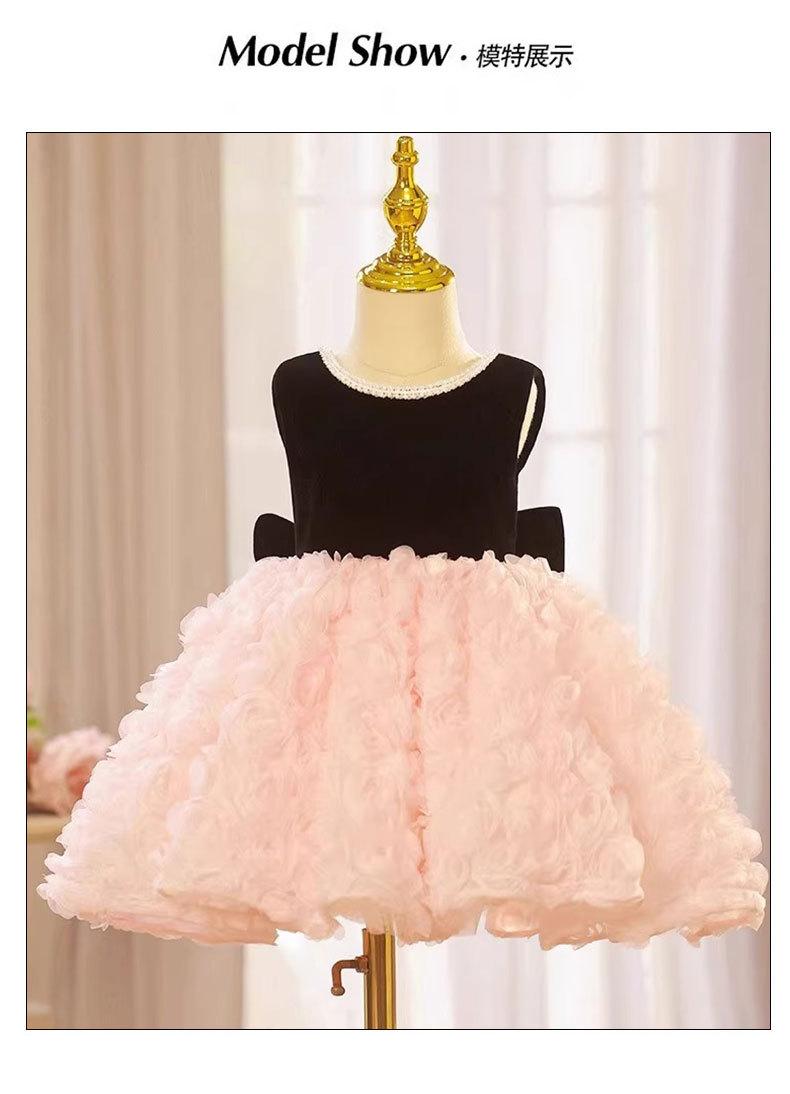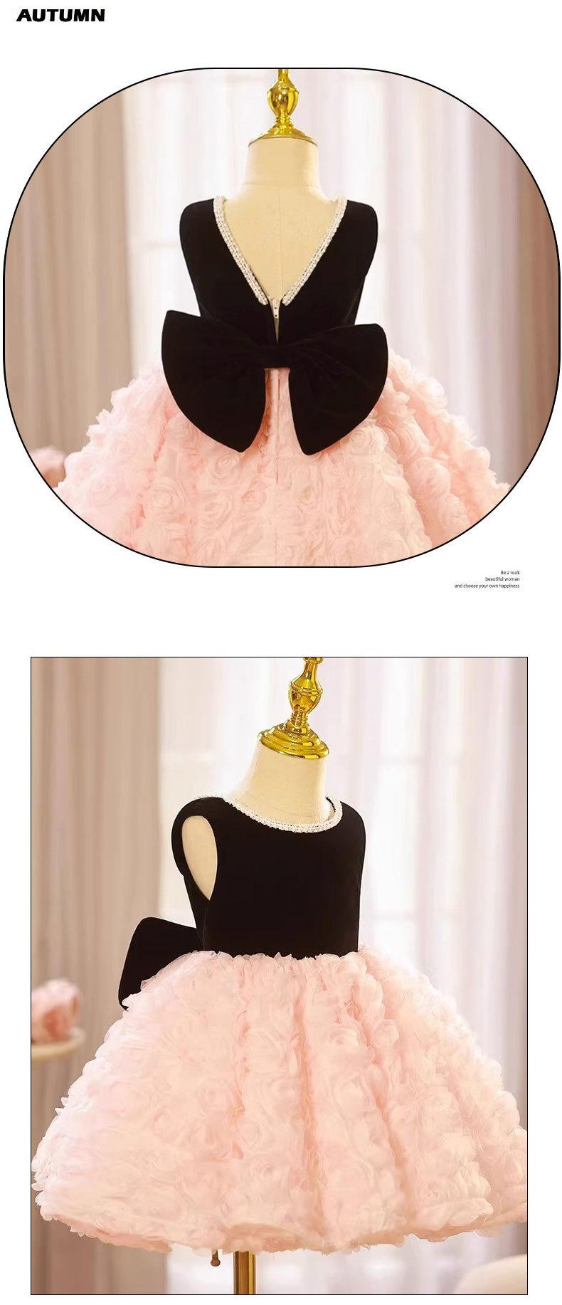 Vestido de un año para el cumpleaños de niña, Vestido de princesa para boda de niña de las flores rosa de verano, Pequeño anfitrión infantil