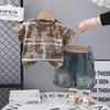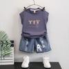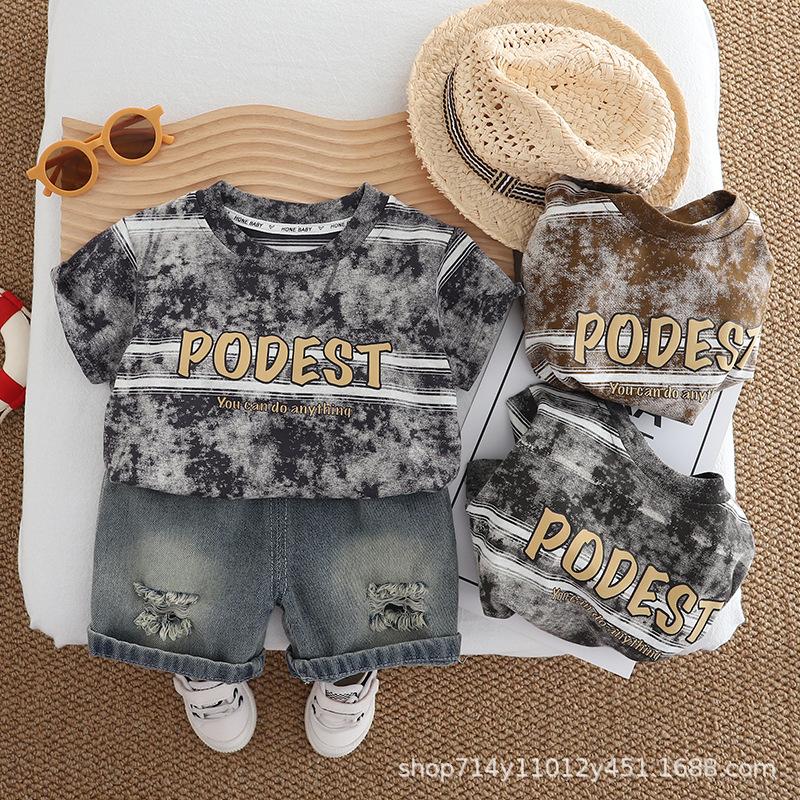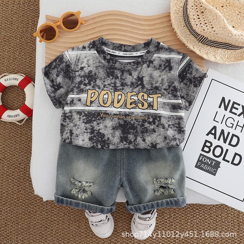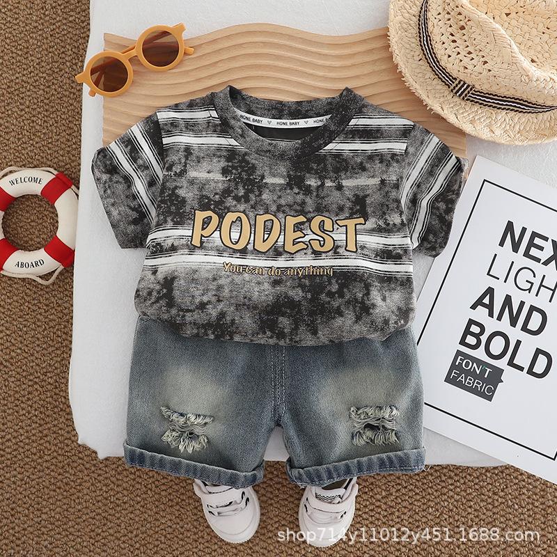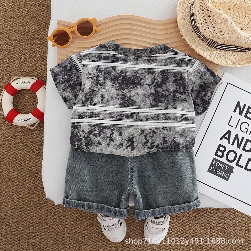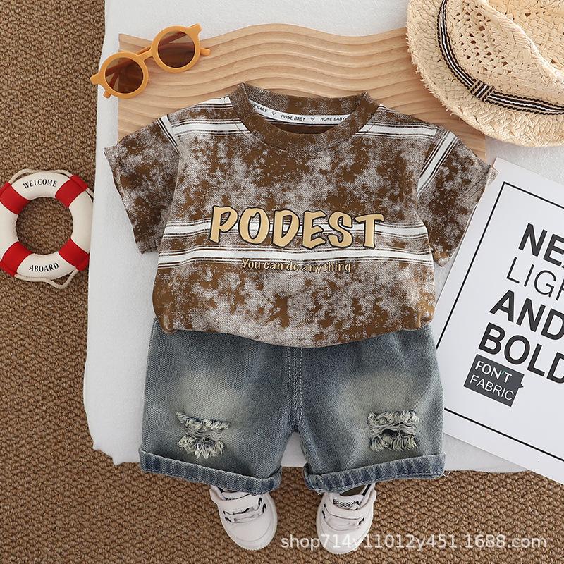 Camiseta de Verano de Manga Corta para Niño Traje de Shorts de Mezclilla Rotos Ropa para Niños 2025 Nueva Ropa de Verano para Niños