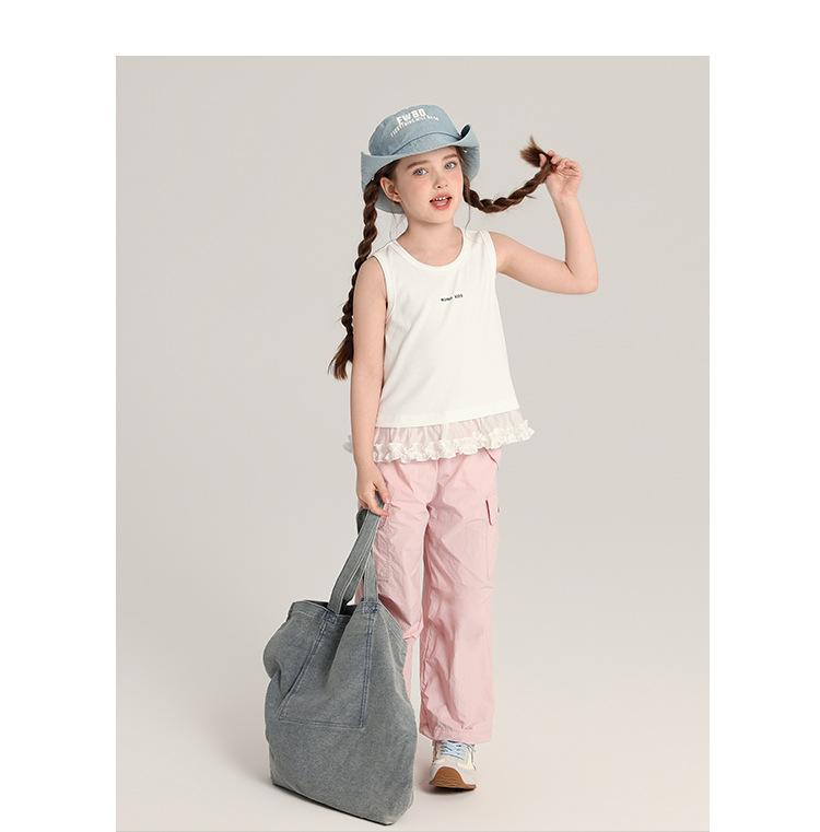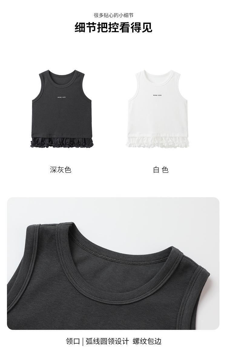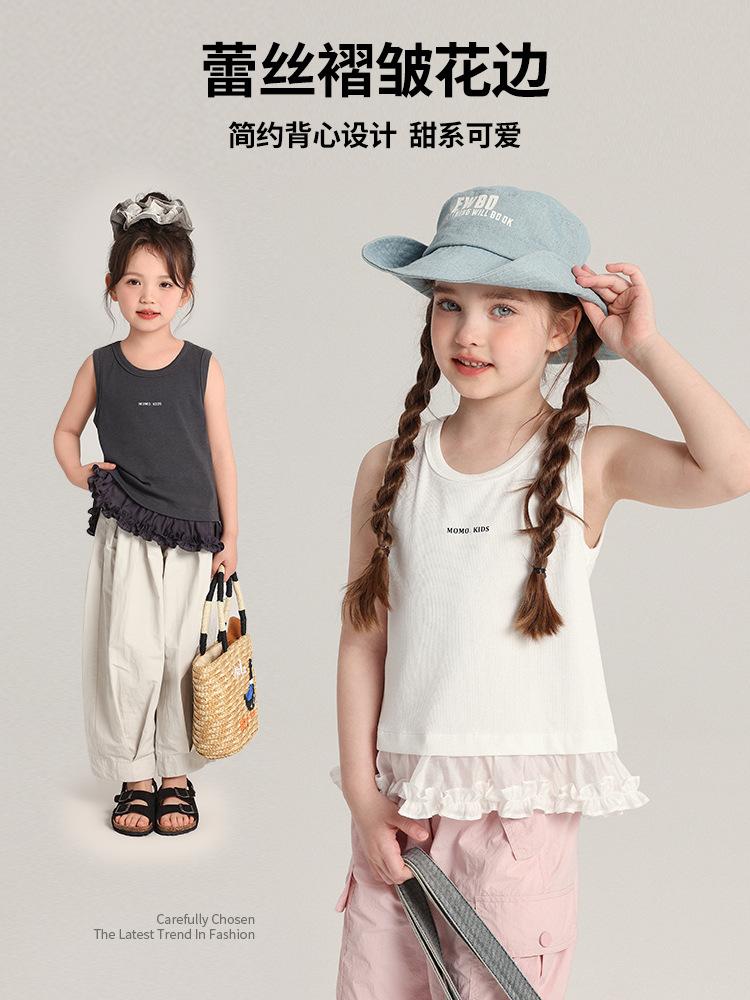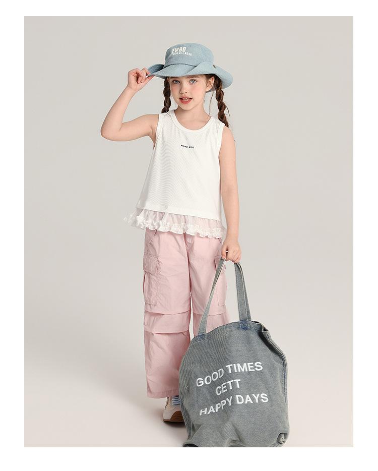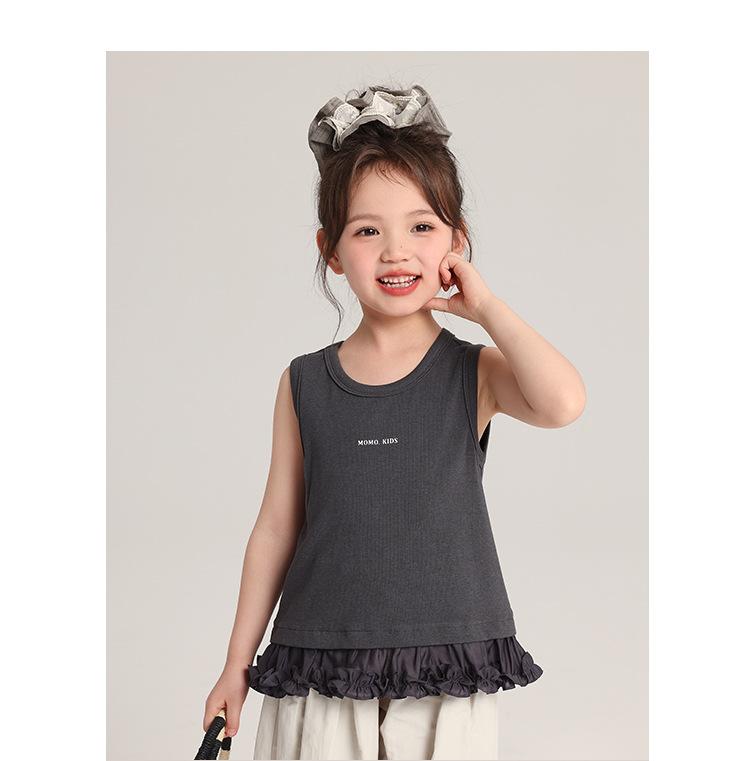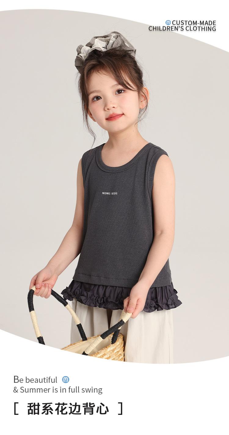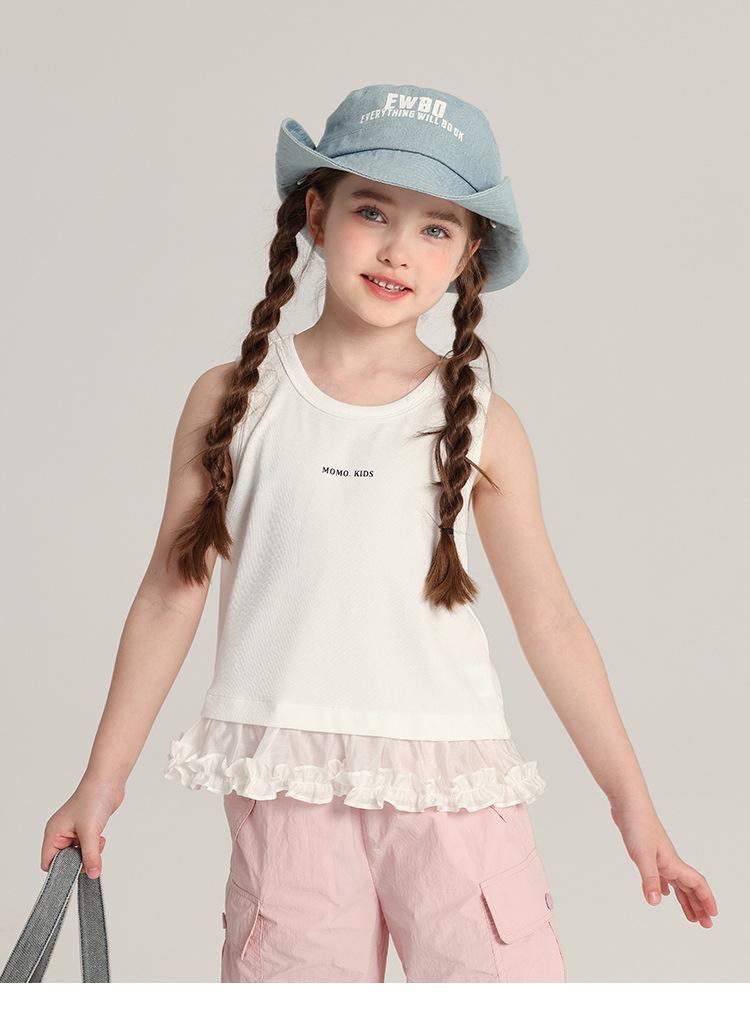 Pudding Haru Ropa para Niñas Chaleco con Letras 2025 Nuevo Verano para Niños Sencillo, Fresco y Cómodo Top de Encaje