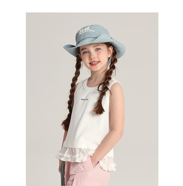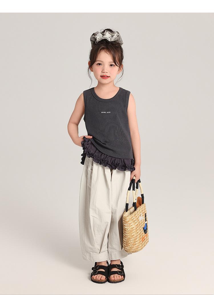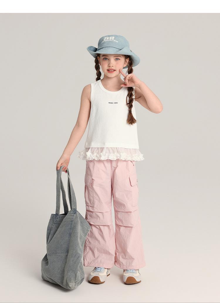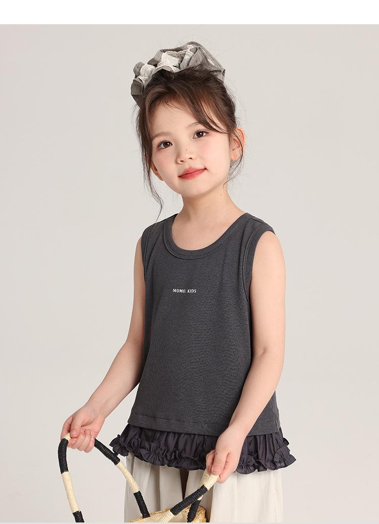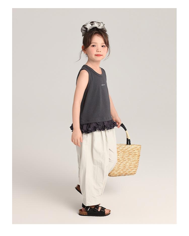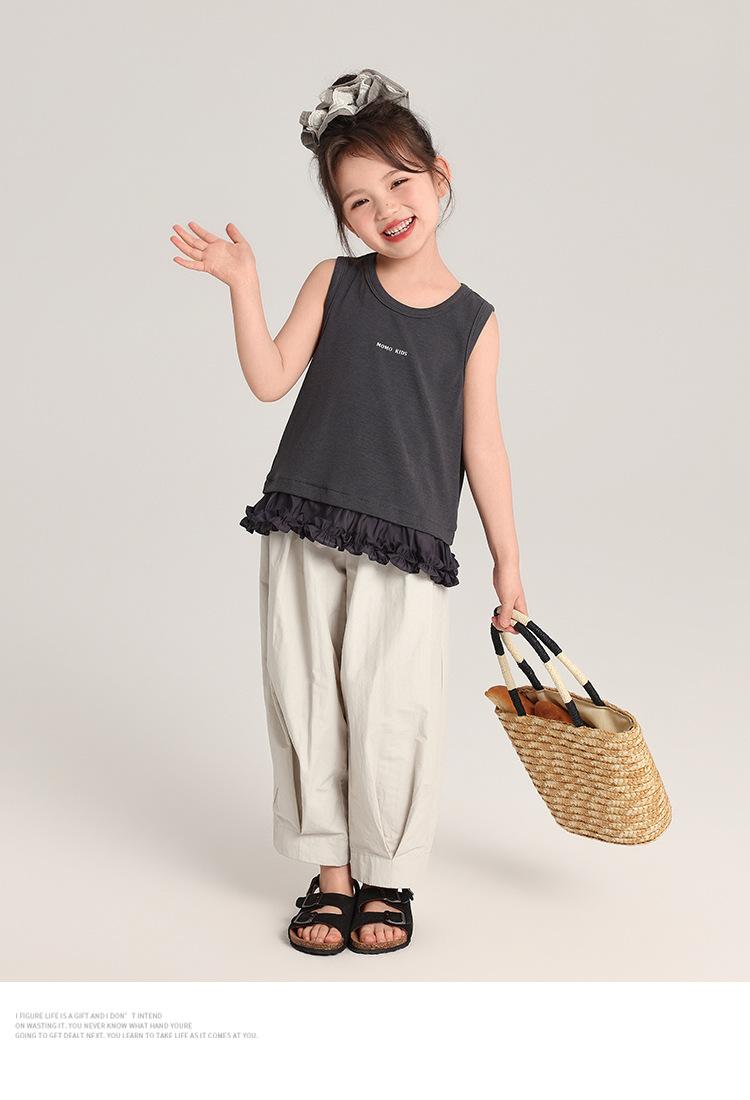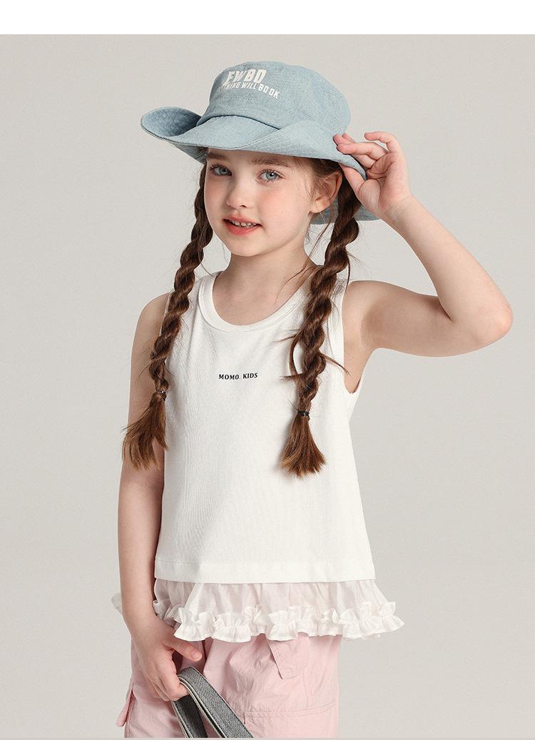Pudding Haru Ropa para Niñas Chaleco con Letras 2025 Nuevo Verano para Niños Sencillo, Fresco y Cómodo Top de Encaje