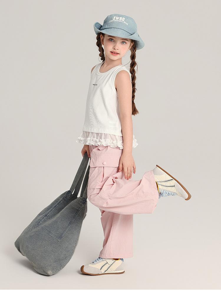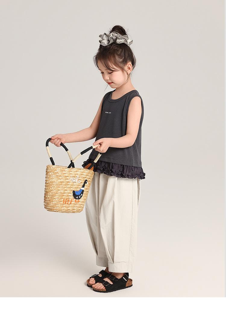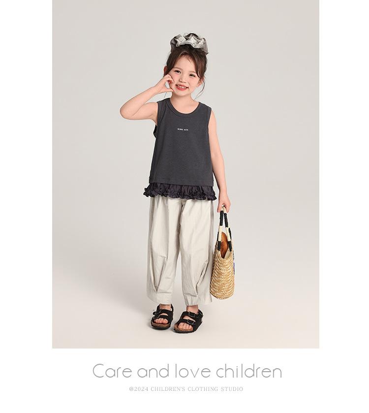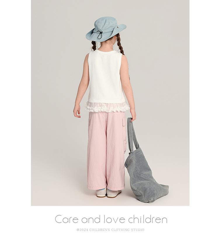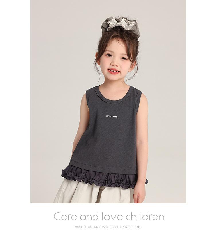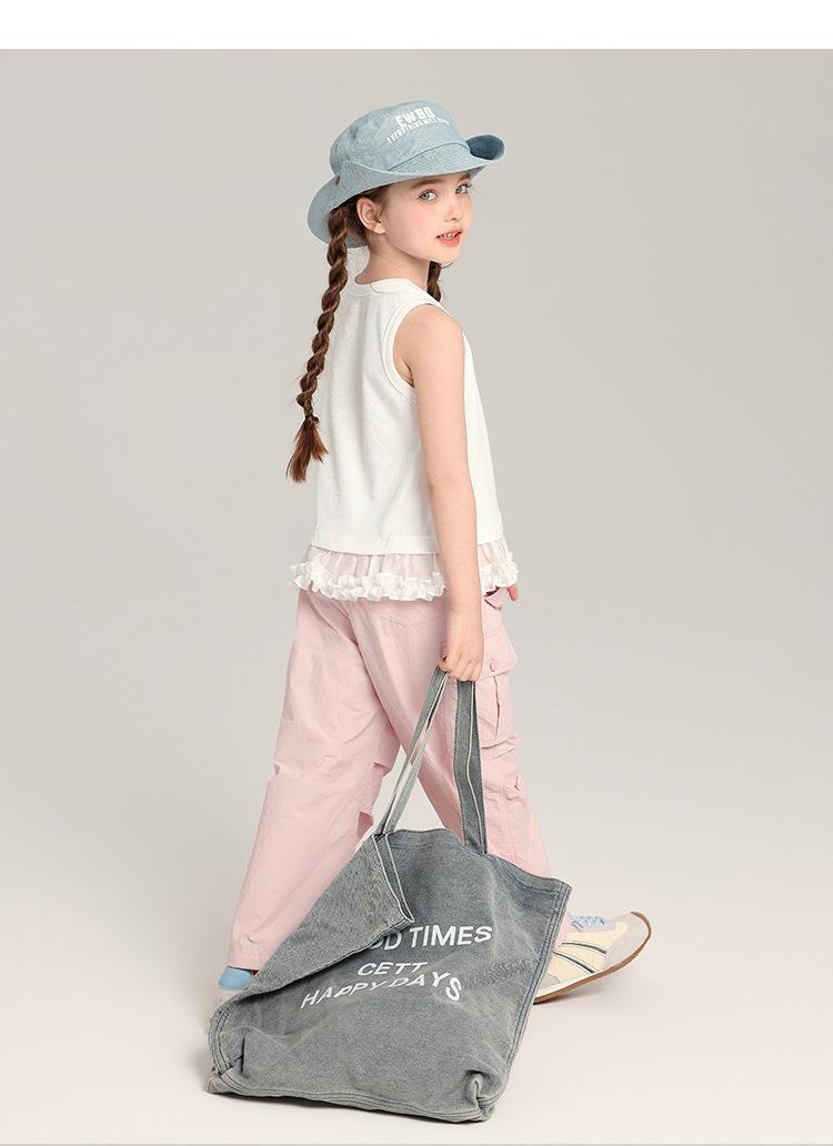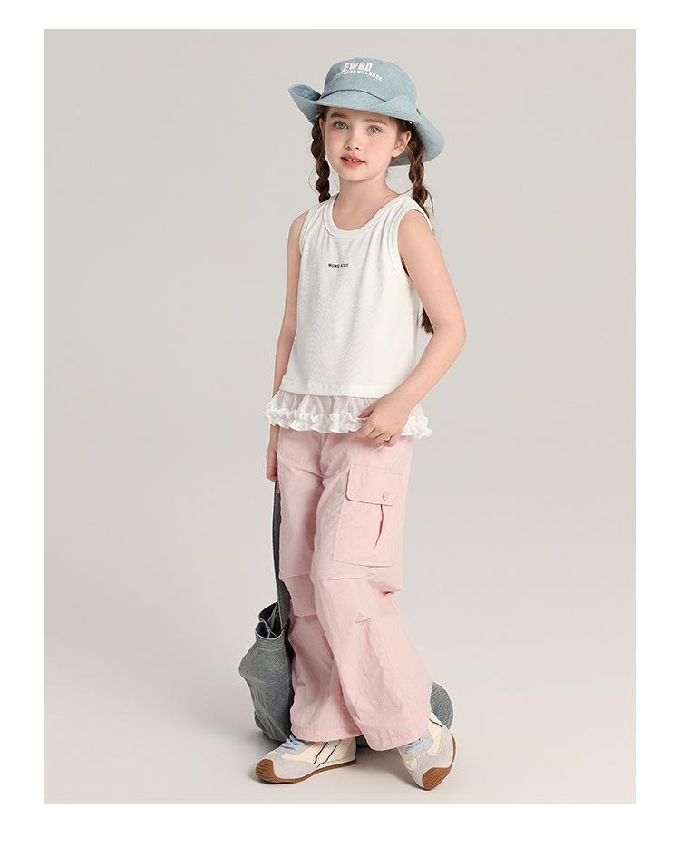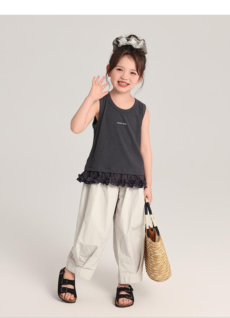 Pudding Haru Ropa para Niñas Chaleco con Letras 2025 Nuevo Verano para Niños Sencillo, Fresco y Cómodo Top de Encaje