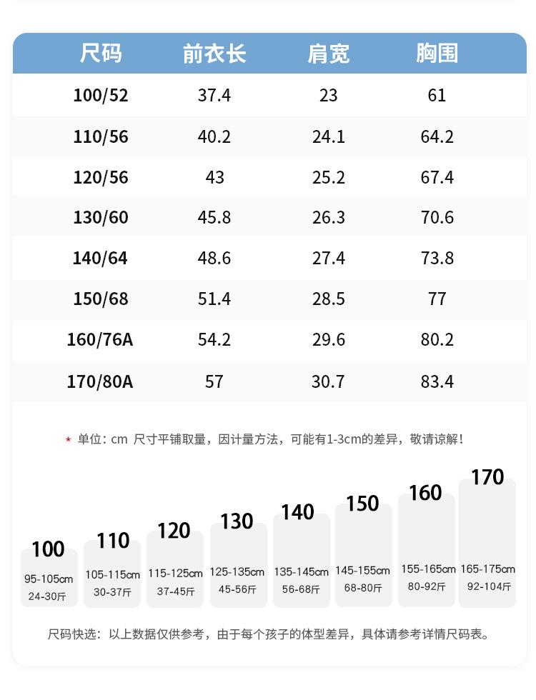Recommended height for size 100 is 95-105cm, Size 110 recommended height 105-115cm, Size 120 recommended heigh...