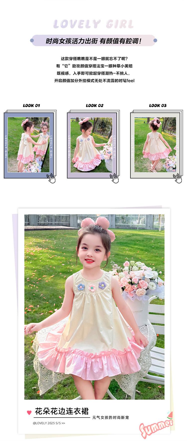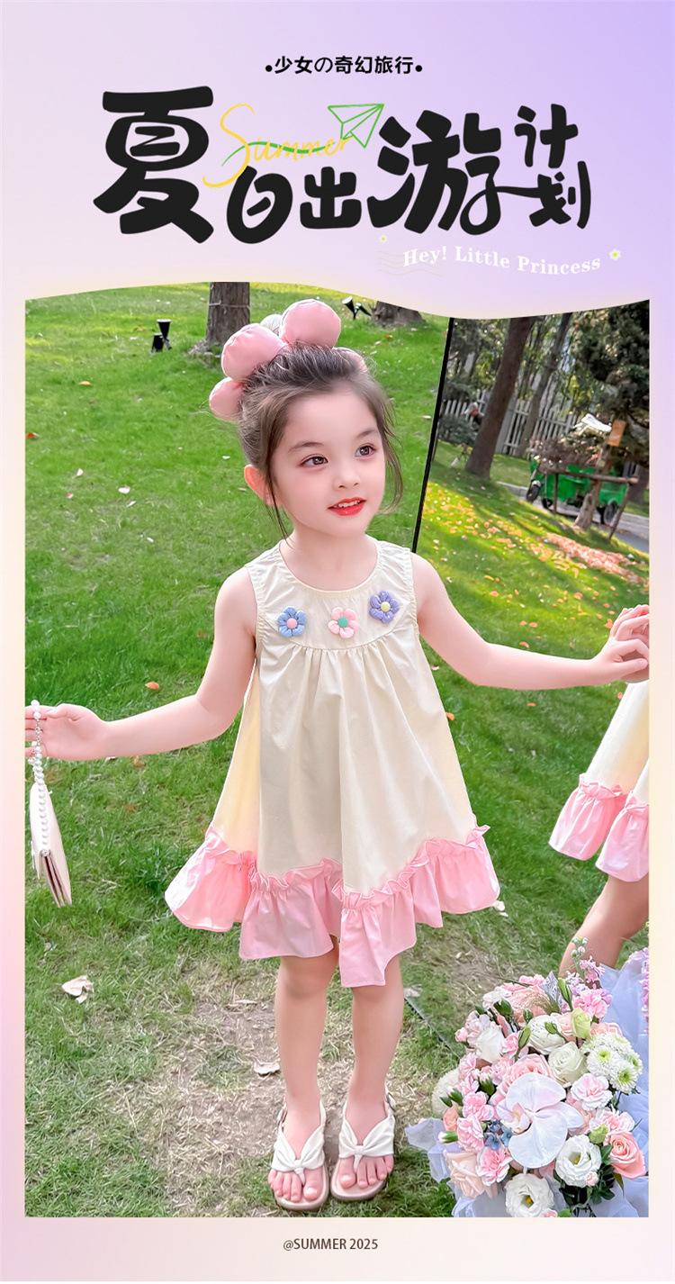 Vestido de Flores para Niñas 2025 Verano Nueva Moda Vestido de Princesa Elegante para Niña Pequeña Vestido Pequeño e Infantil