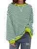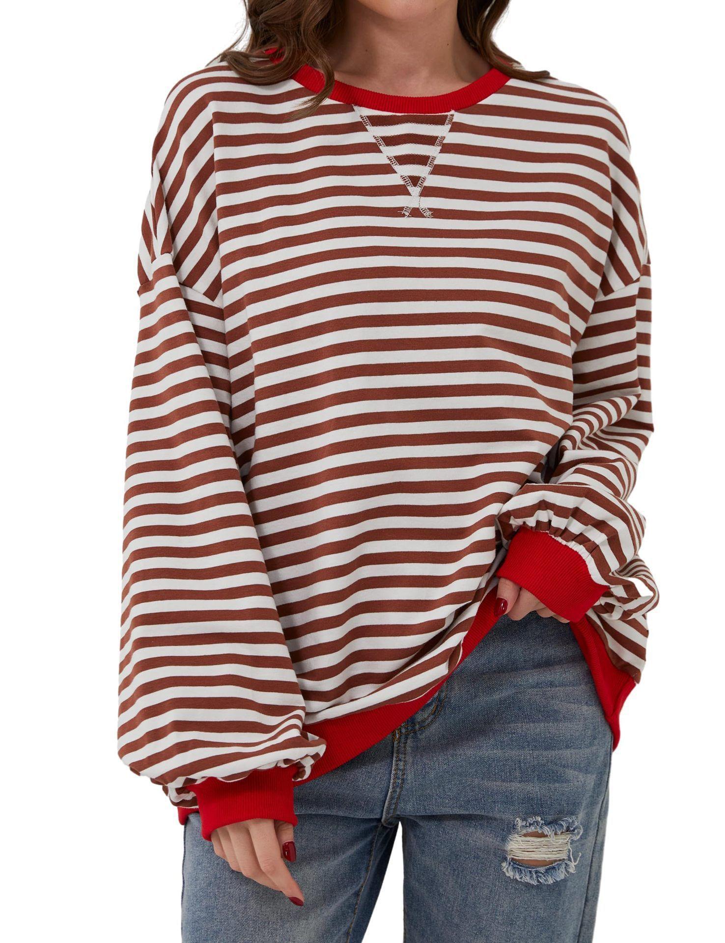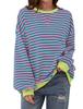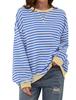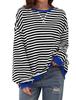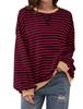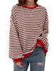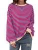 Camiseta informal de manga larga con cuello redondo y estampado a rayas, ideal para el hogar, primavera de 2024.