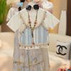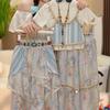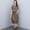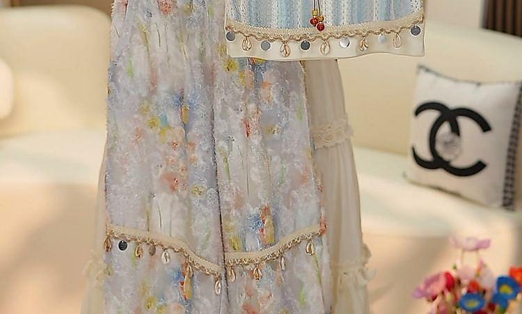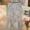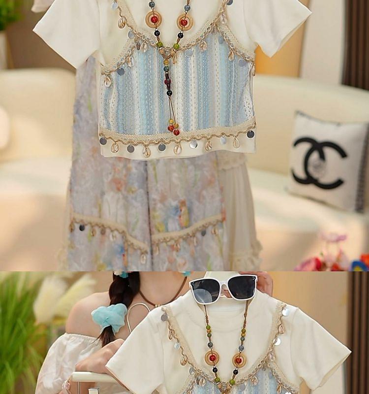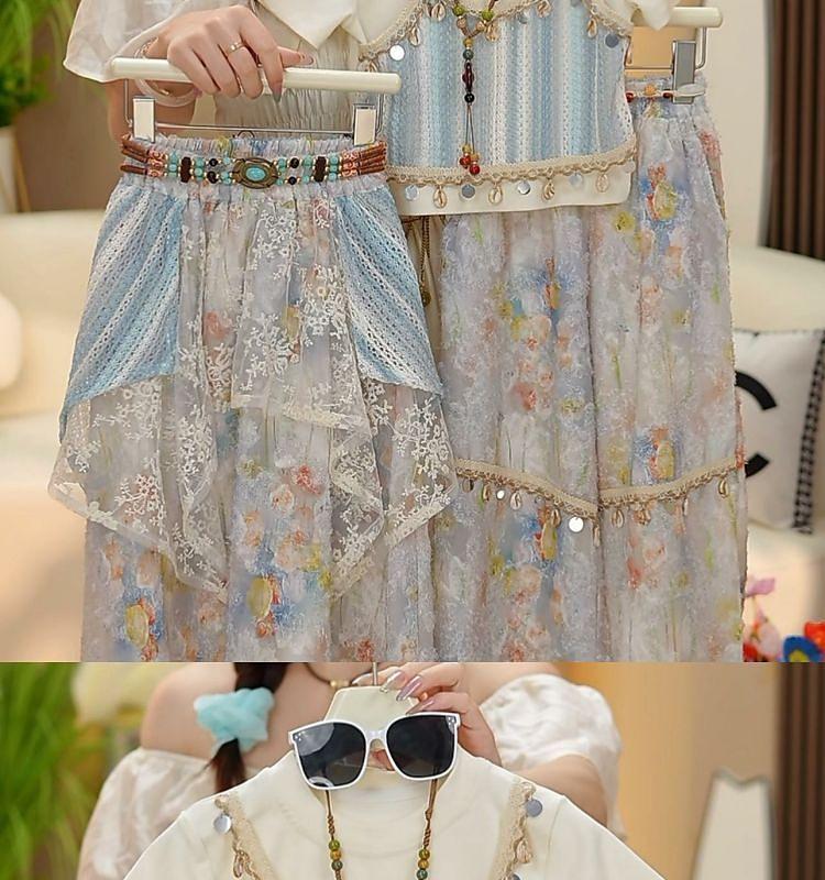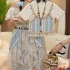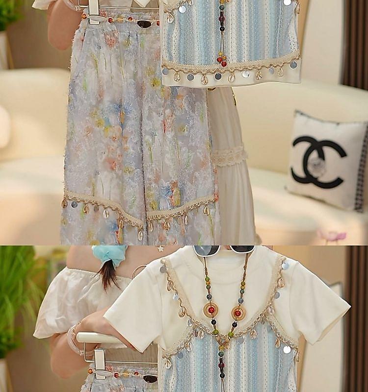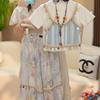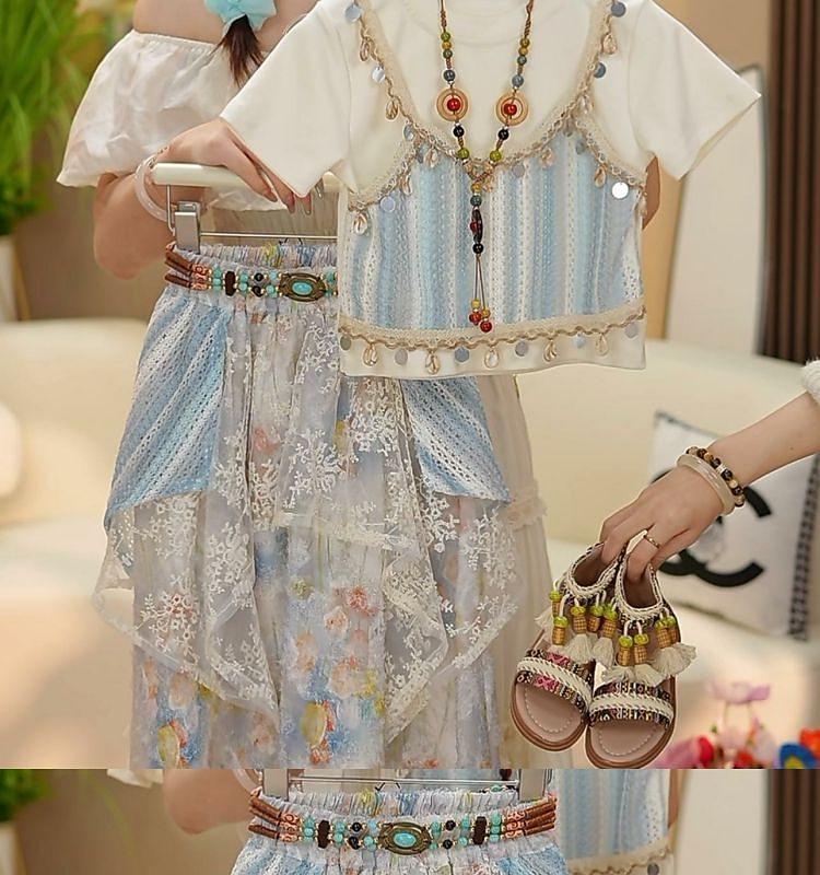 Ropa para Niñas Top de Manga Corta Traje 2025 Verano Nuevo Estilo Étnico Pintura al Óleo Vestido Largo Falda de Moda Traje de Dos Piezas