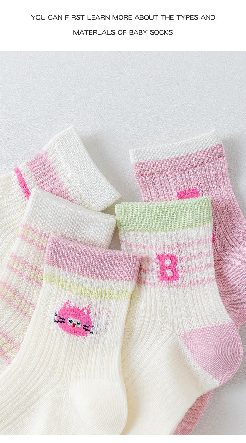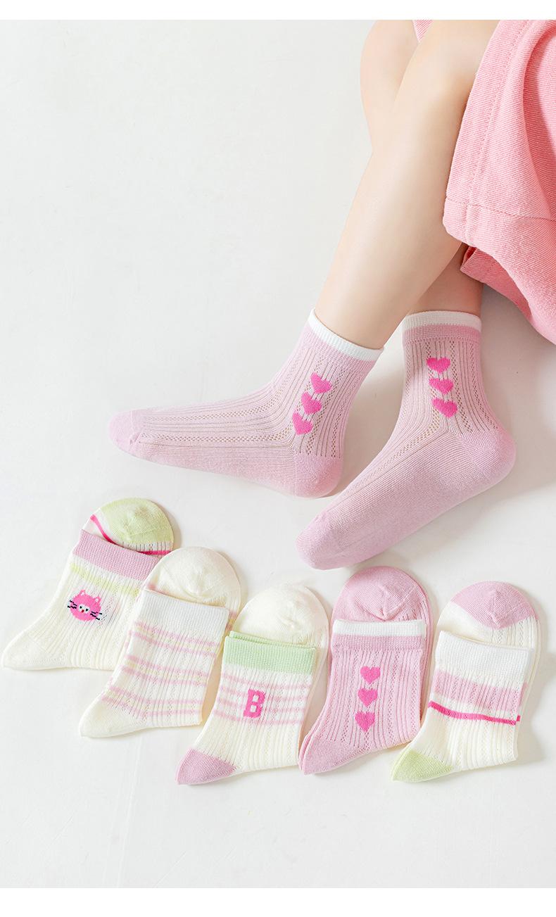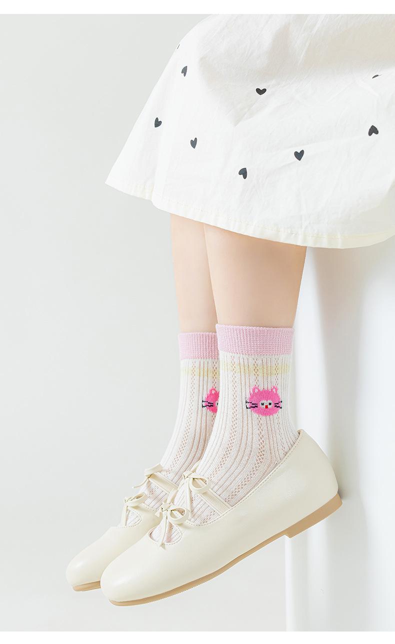 Calcetines para Niños al Por Mayor Verano Ultrafinos Lindos Malla Tubo Calcetines de Algodón sin Costuras Dibujos Animados Primavera y Verano Calcetines para Niñas