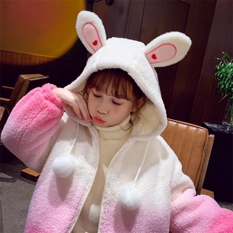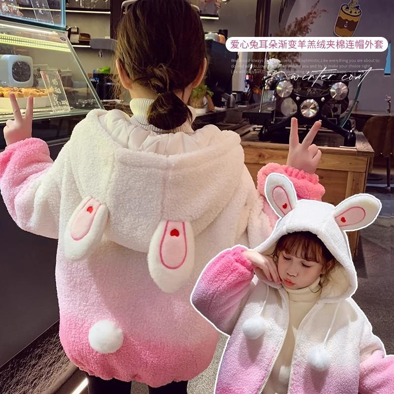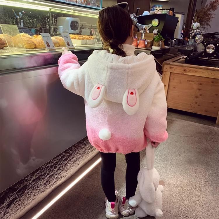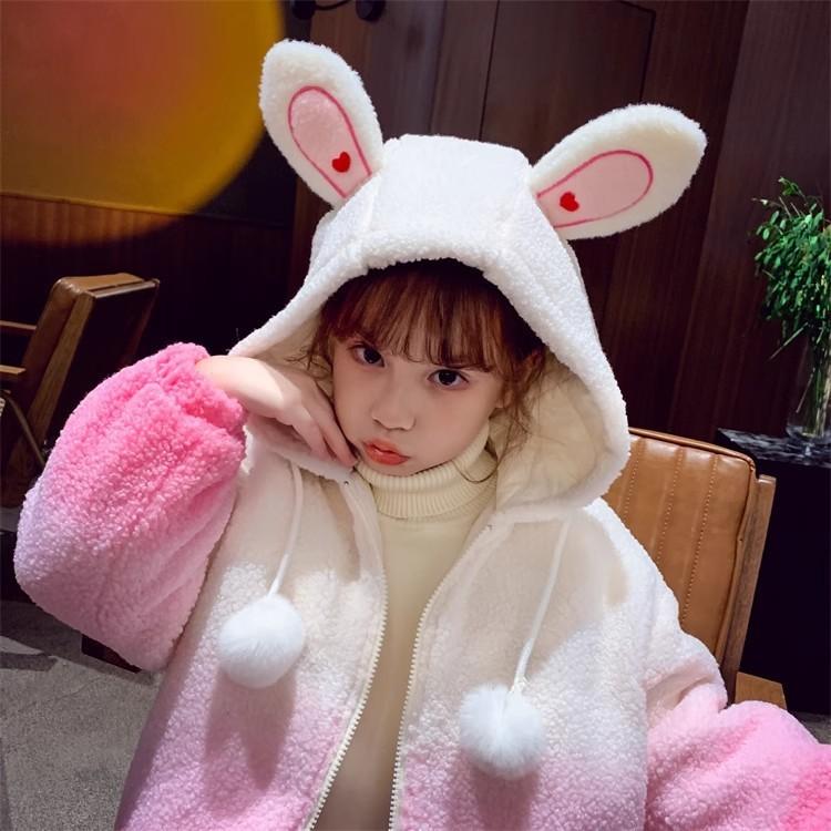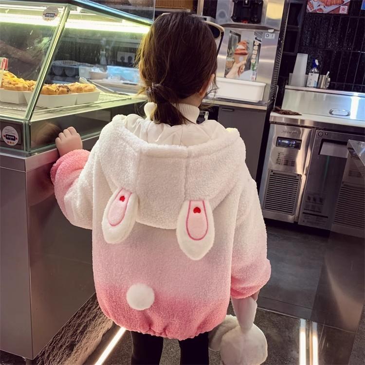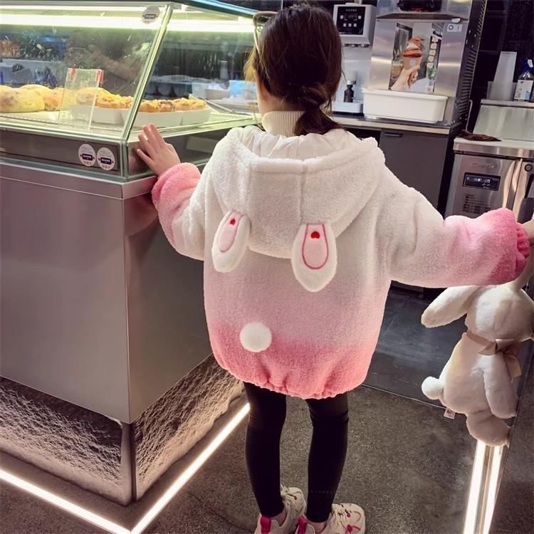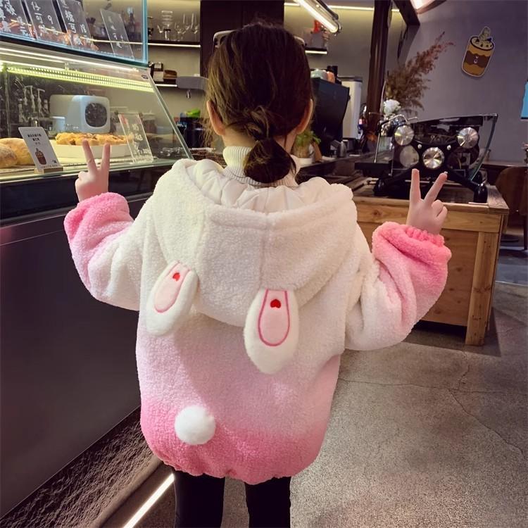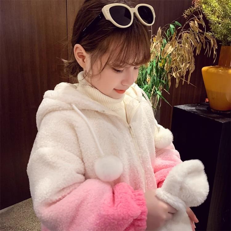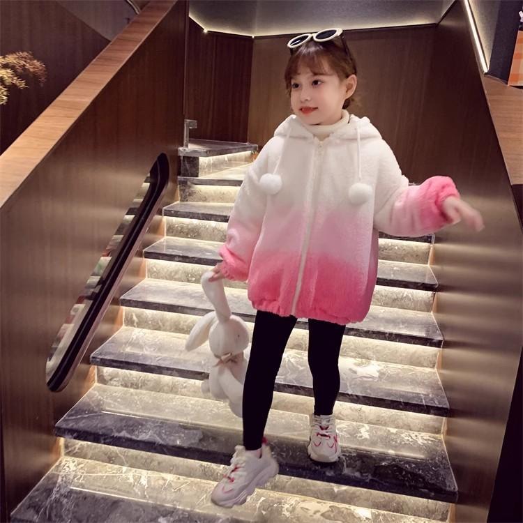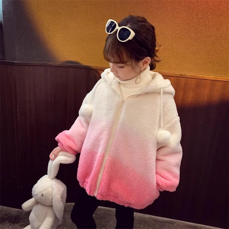 Abrigo de Invierno para Niñas 2024 Suéter de Lana de Cordero Grueso Nuevo Elegante Degradado para Niños