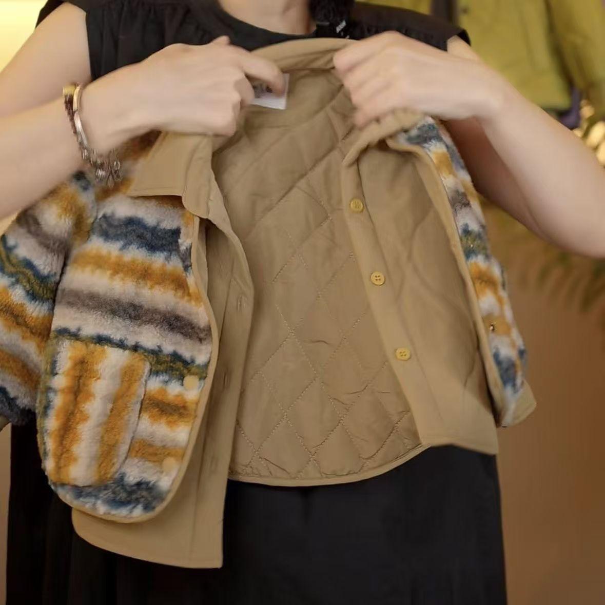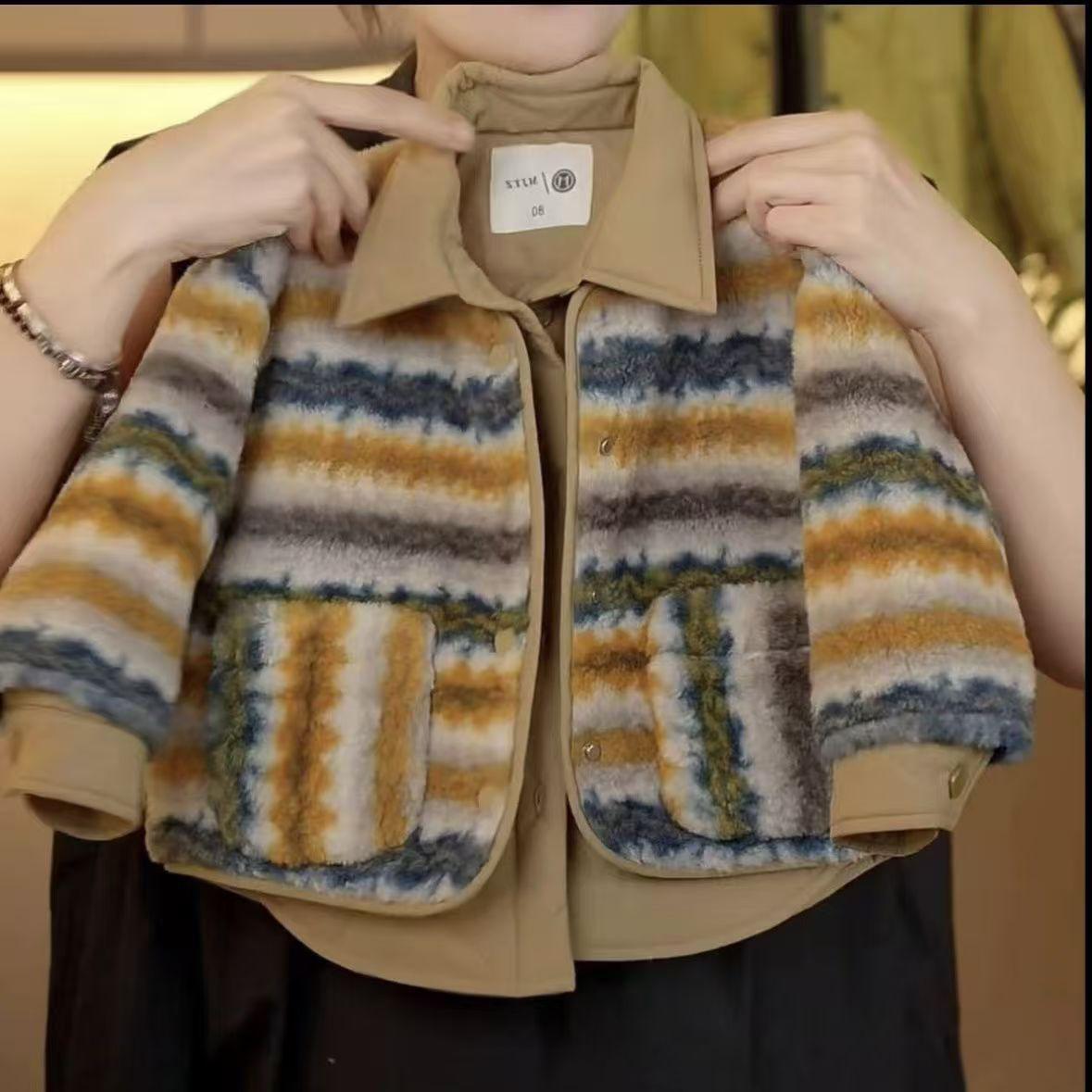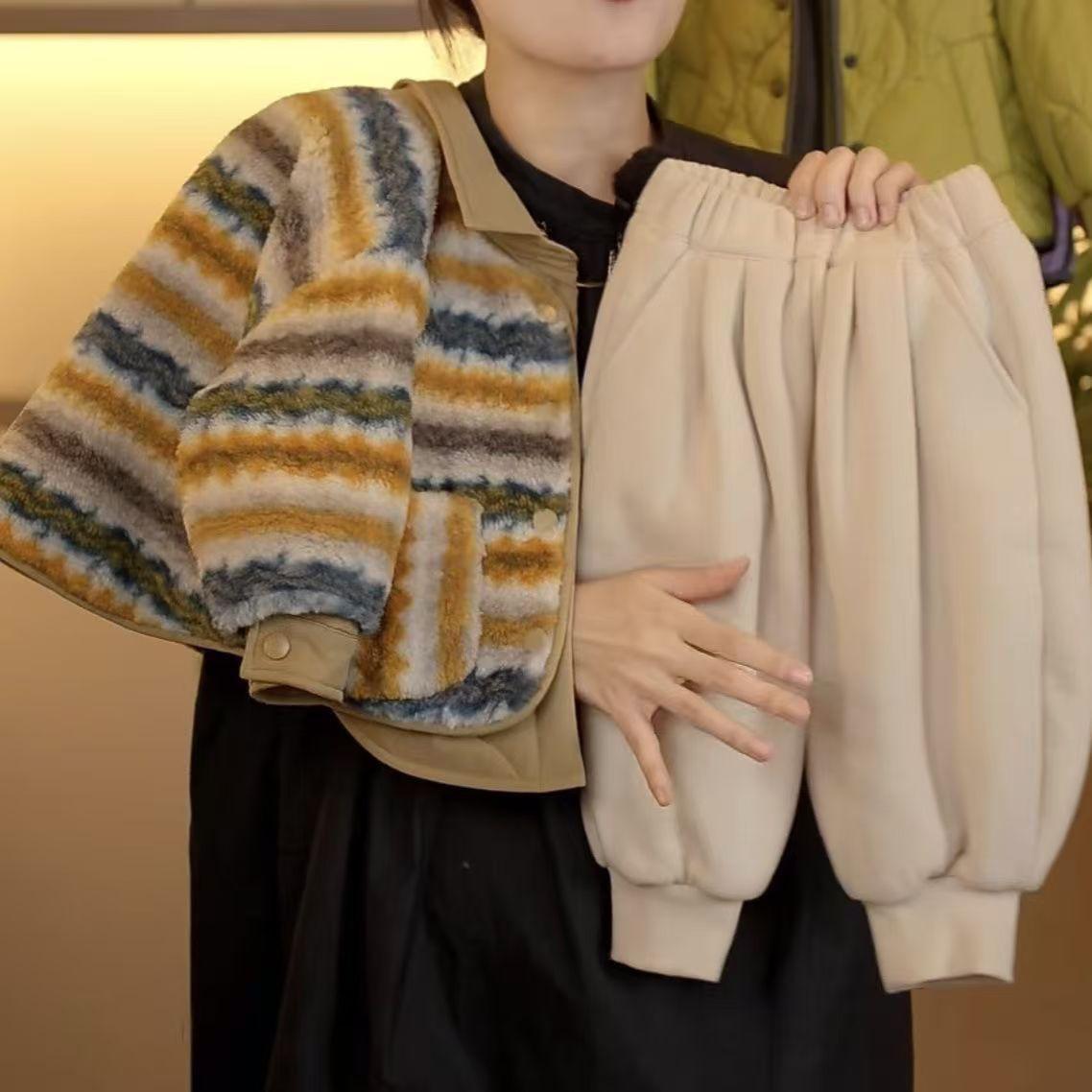 Fur sweater fake two-piece set + off-white fleece pants, Fake two-piece sweater set, Off-white fleece pants