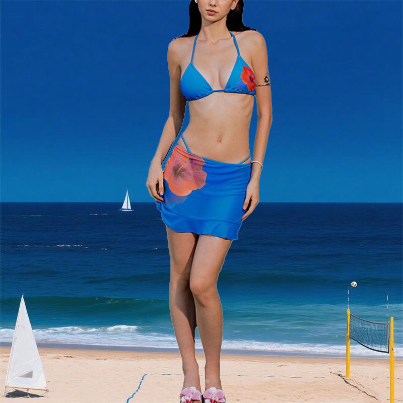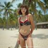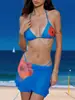 Europeo y Americano Nuevo Estilo 2025 Verano Sexy Moda Ajustado Estampado Vacaciones de Playa Conjunto de Dos Piezas con Tirantes Halter