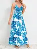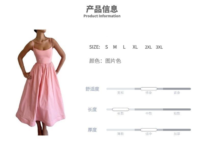 2024 Verano Nuevo Comercio Exterior Europeo y Americano para Mujer Vestido Sling Sexy de Color Sólido con Cuello U y Cintura Plisada Mujer