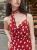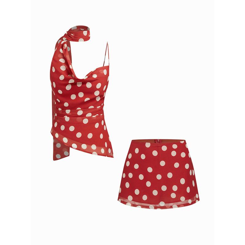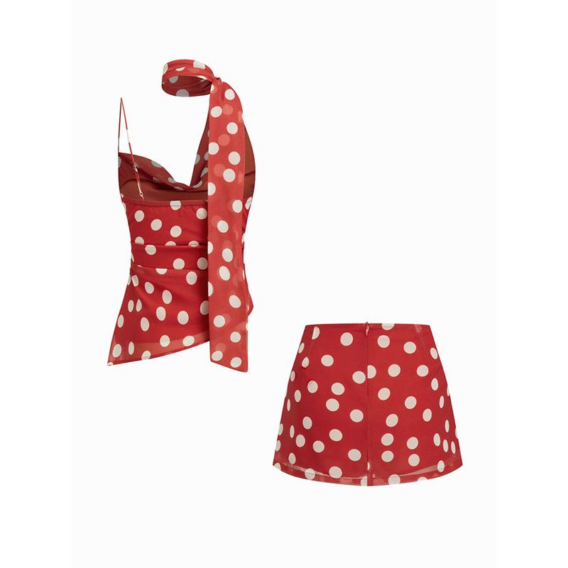 Europeo y Americano Nuevo Estilo 2025 Verano Sexy Moda Slim Lunares Conjunto de Dos Piezas Top Personalizado Falda de Tirantes para Mujer