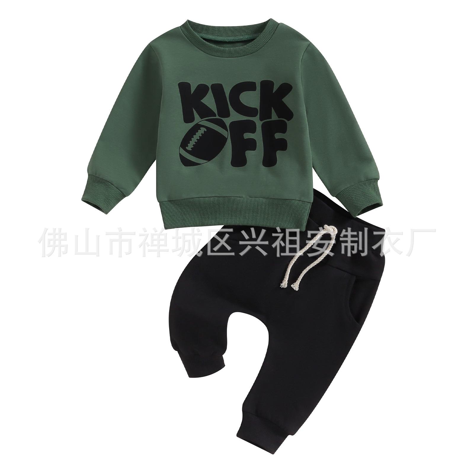 Conjunto transfronterizo para bebé niño nuevo con estampado de letras de rugby, top y pantalones