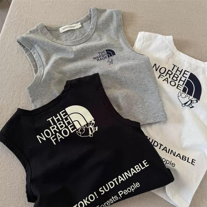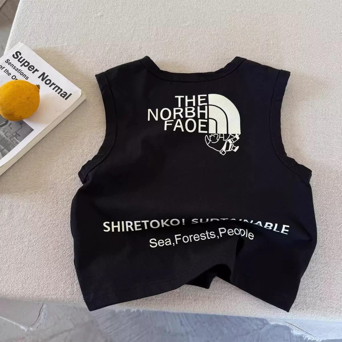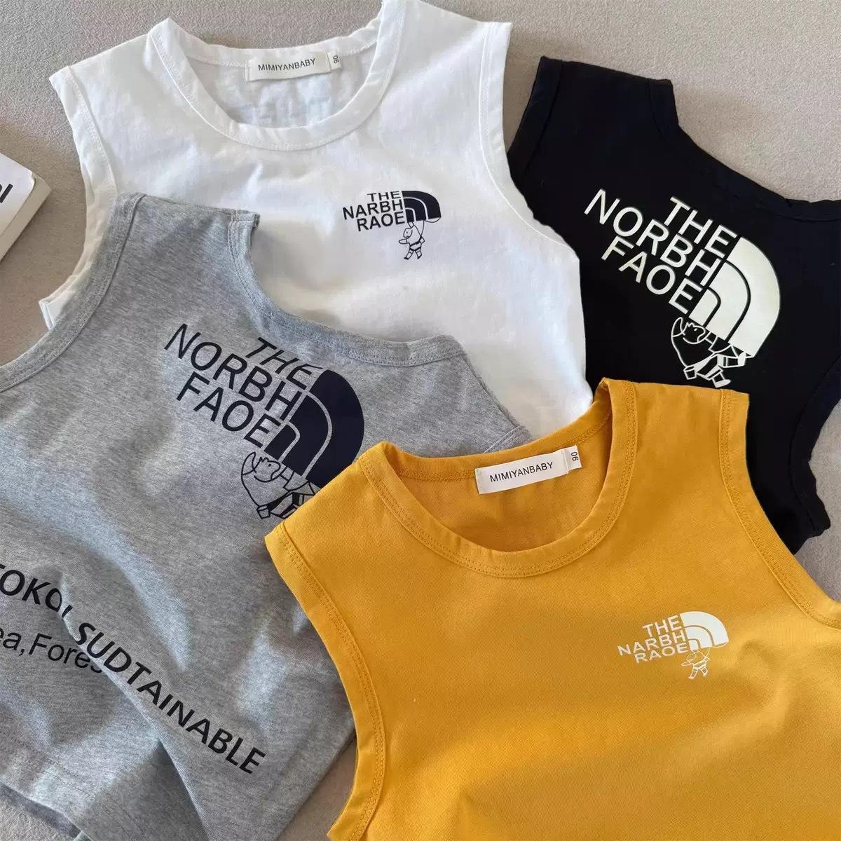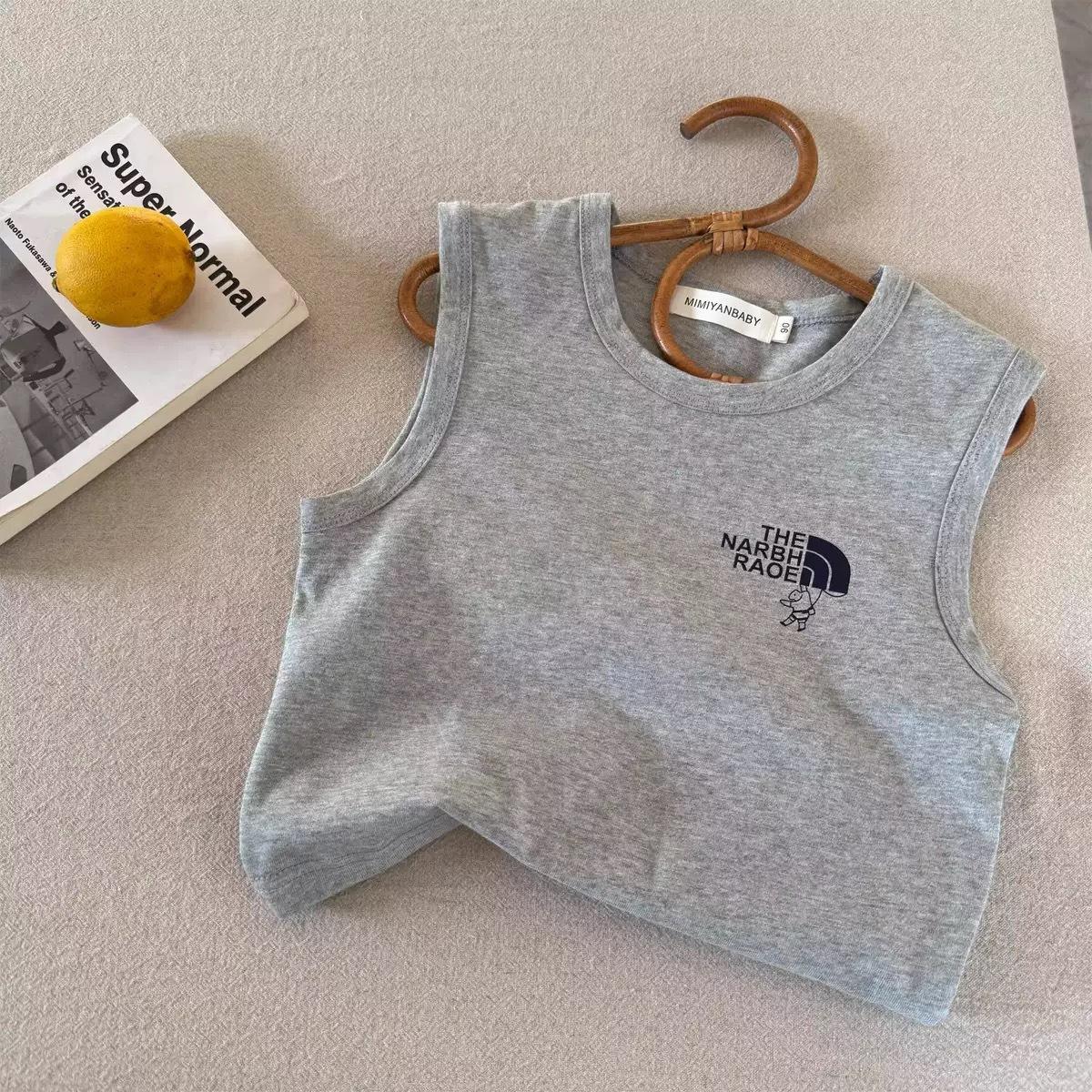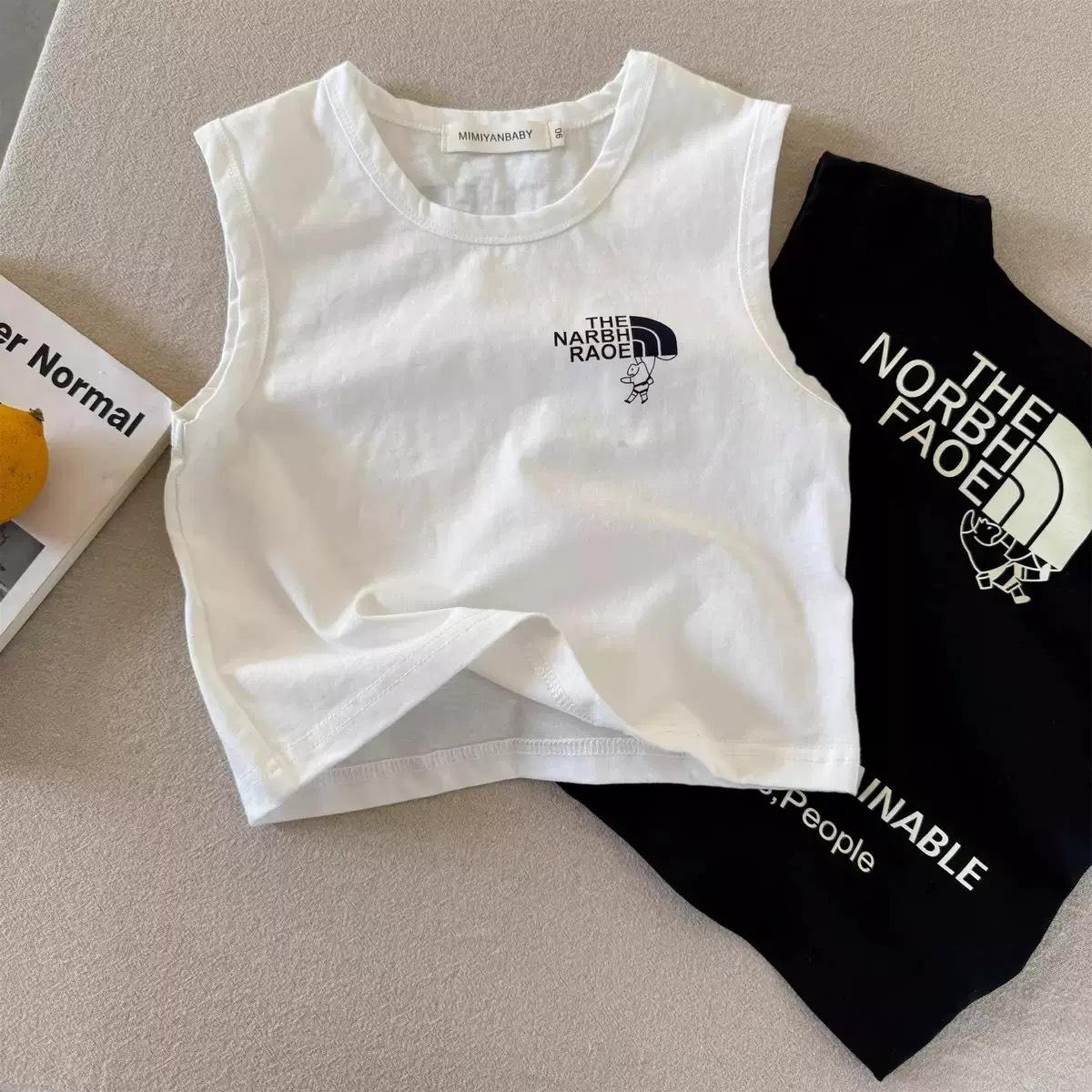 Chaleco para niños 2025 Verano Niños y Niñas Estilo Japonés Marca de Moda Letra Camiseta sin Mangas Bebé Niño Pequeño Elegante Camiseta Chaleco Racerback