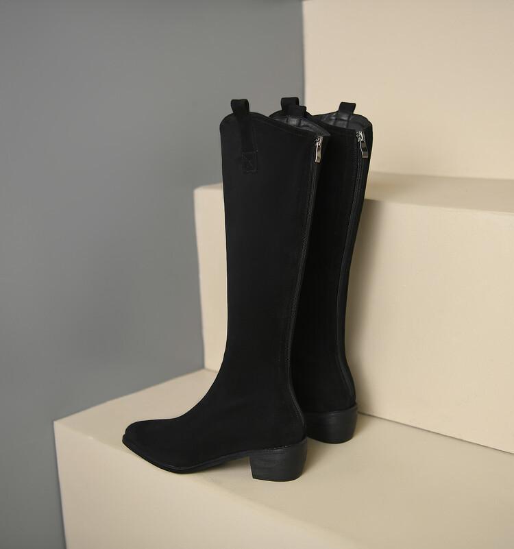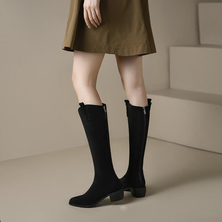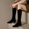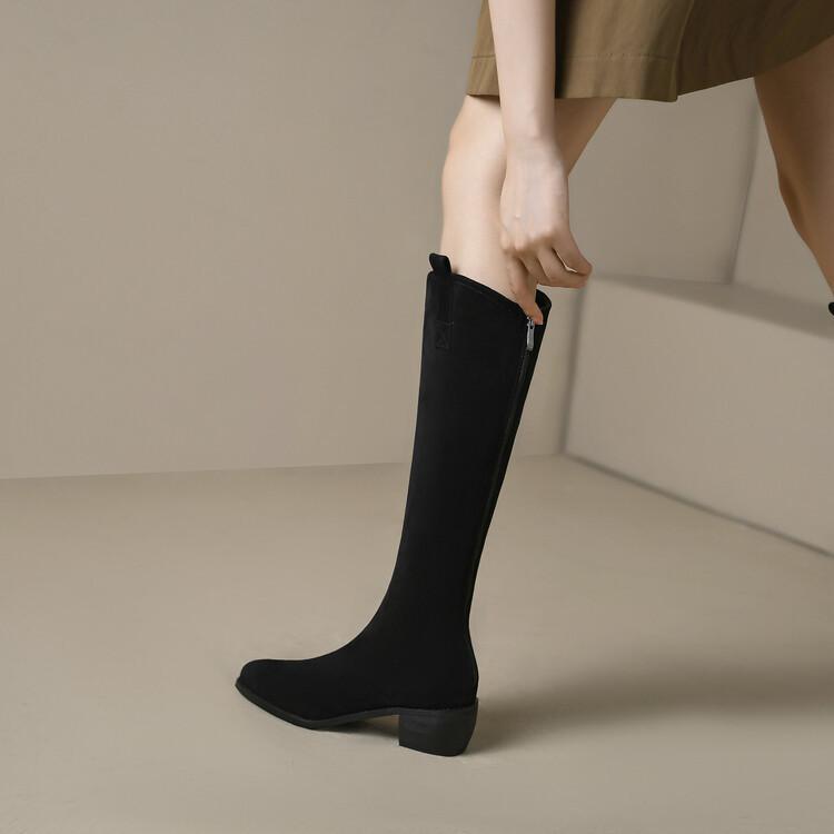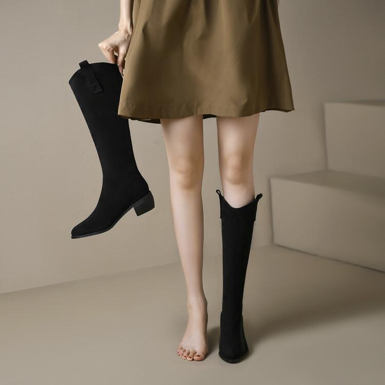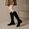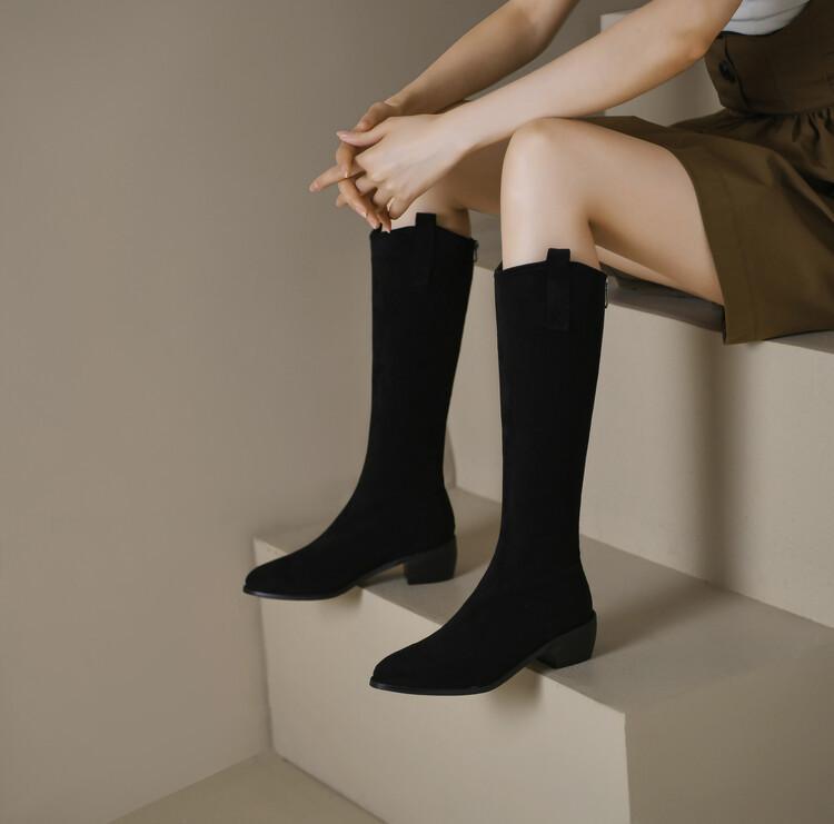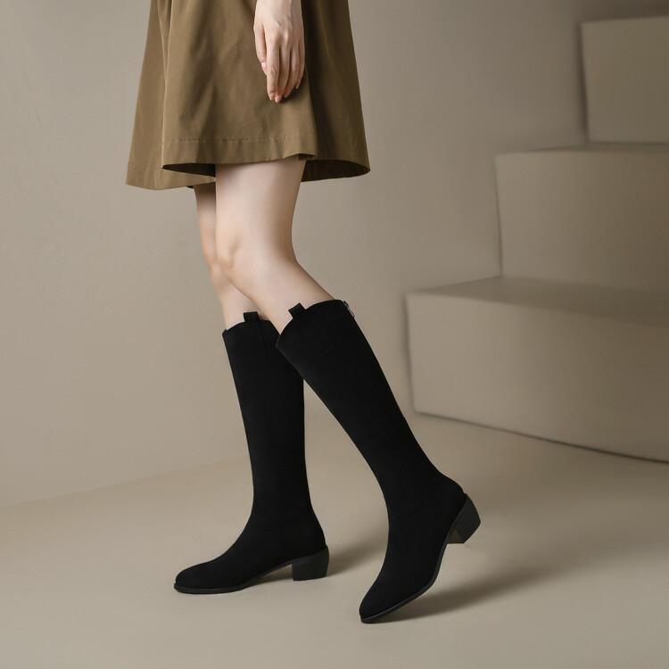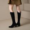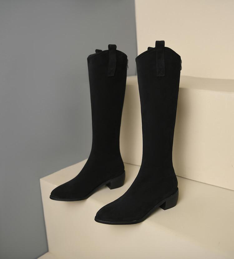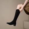 Botas Altas de Tacón Medio Nuevas para Mujer, Tacones Cuadrados de Gamuza, Punteras Redondas, Botas Europeas y Americanas para Mujer, Botas de Moda para Mujer de Talla Grande de Primavera y Otoño