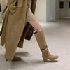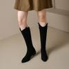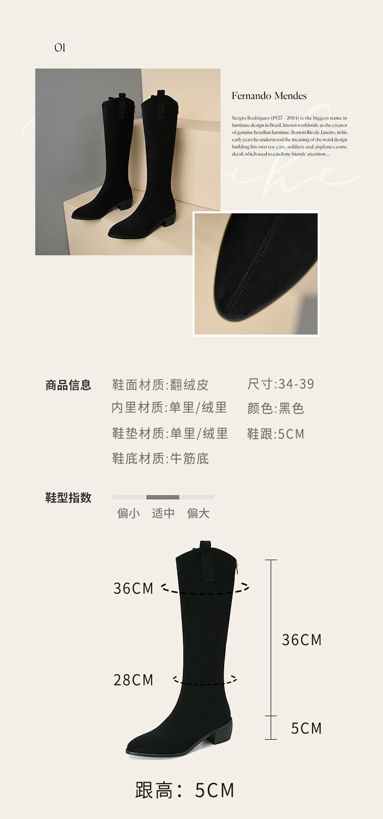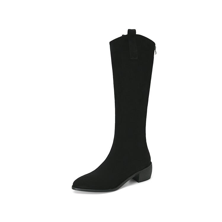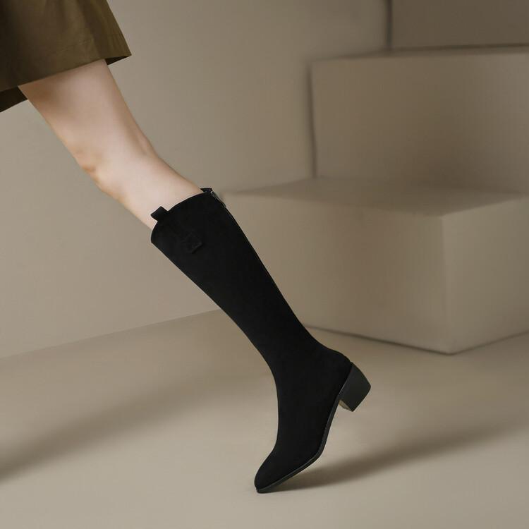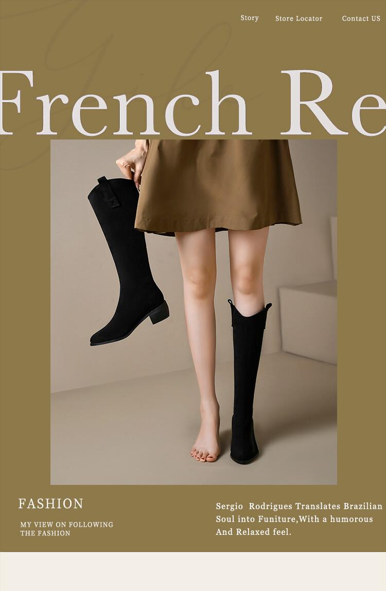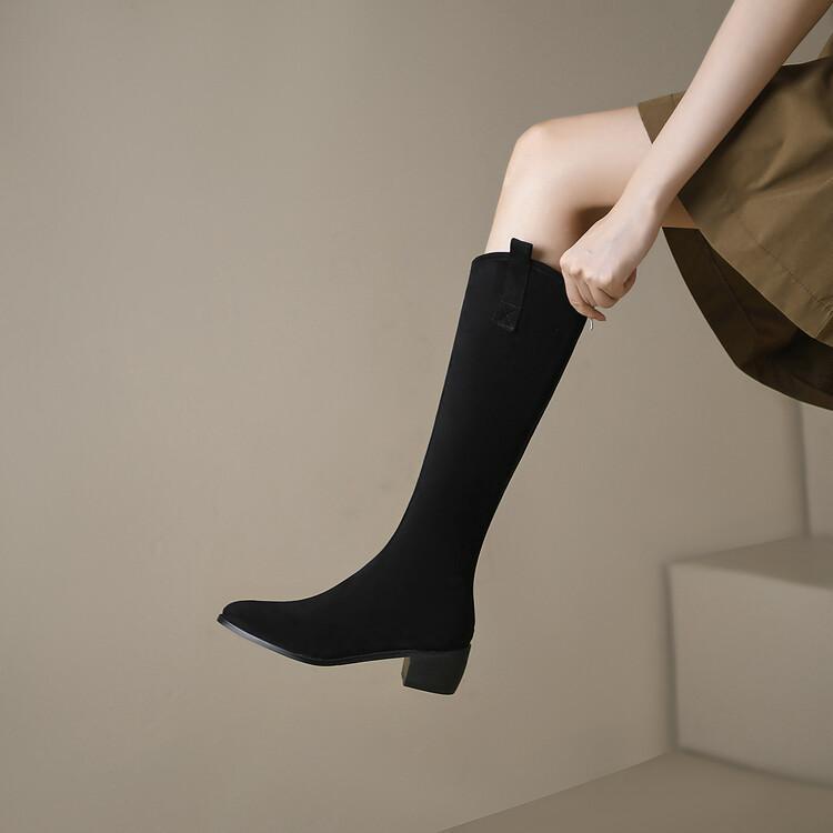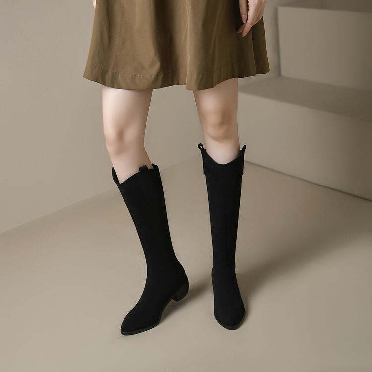 Botas Altas de Tacón Medio Nuevas para Mujer, Tacones Cuadrados de Gamuza, Punteras Redondas, Botas Europeas y Americanas para Mujer, Botas de Moda para Mujer de Talla Grande de Primavera y Otoño