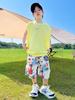 Traje de Verano para Niño Sin Mangas Chaleco Shorts Ropa para Niños Nuevo Niño Suelto Camiseta Shorts Conjunto Casual de Dos Piezas