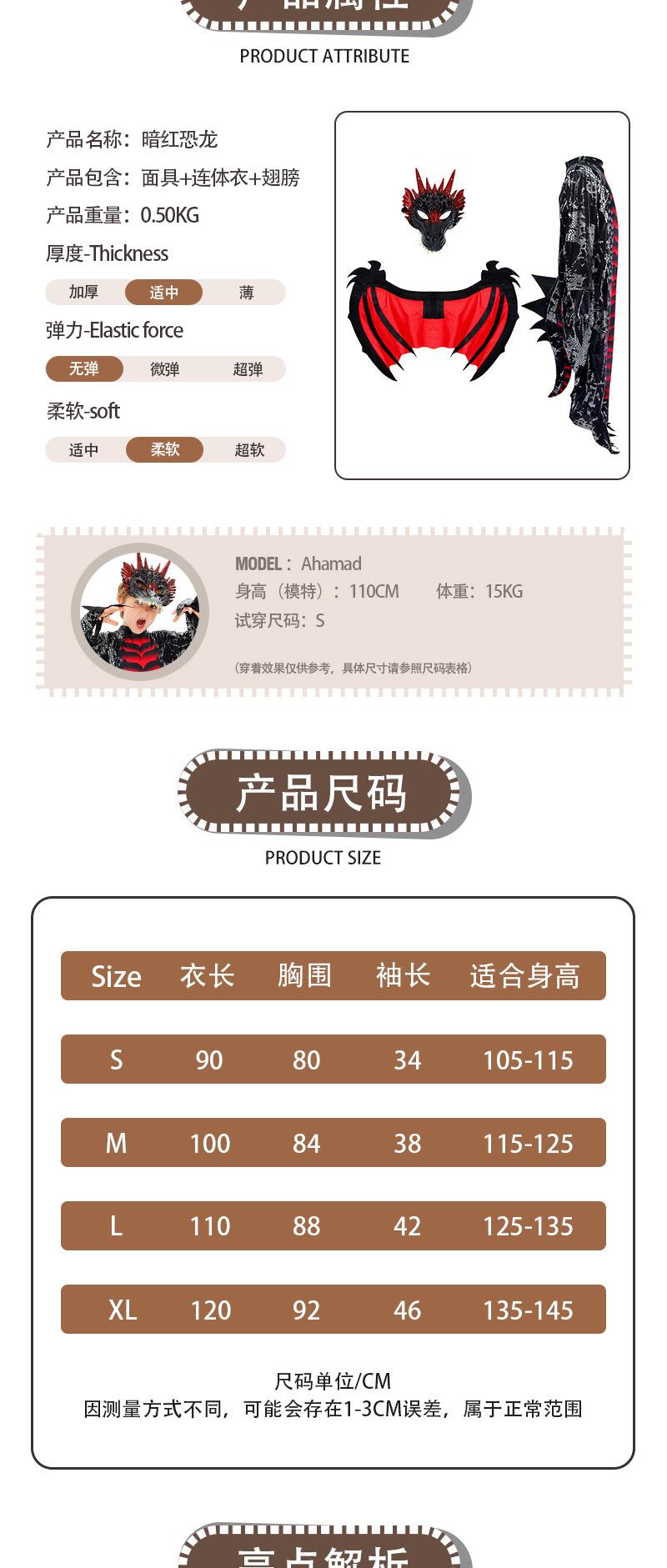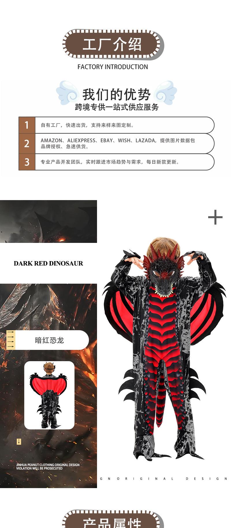 [Nuevo] Disfraz de actuación de Halloween Disfraz de juego de rol de Dinosaurio Diablo Disfraz de actuación de escenario de terror para niños